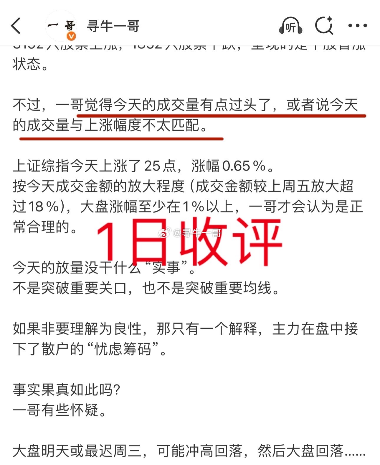 A股:整体来看,市场下跌还算是比较克制的。分时趋势还在,大盘还是有反弹机会的,能不能抄底?市场的下跌,是在一哥预期之中的。一哥周一盘后分析过原因(图2,图3),核心理由是周一的成交量放大的“有些过头”。周二大盘跌破了3900点,也把周一的跳空上涨缺口给回补了。实际上,周一的跳空上涨缺口本身就很诡异,昨天不回补,后市还是会回补的。周二大盘低开低走,全天就没红过,市场很是沉闷。不过,周一的下跌还是比较克制的。虽然有3493只股票下跌,但跌幅相对有限,大多数股票的跌幅集中在0~2%之间,跌停板个股7只。最终收盘3897点,盘中最低点3888.33点,没有跌破短期MA5均线3887.95点。而且目前MA5均线刚刚上穿了MA10均线(3885.92点)。市场并不是一无是处,还是存在反弹技术条件的。如果大盘跌到3880点附近,甚至跌破3800点一线,止跌反弹,短线可能是个较好的抄底机会。如果大盘不下探,而是直接上涨,大盘上行的空间可能会比较有限。一哥上周末(11月30日)的时候讲过,本周k线小阴K线或小阳K线都有可能。就是说,本周大涨或大跌的概率都不大(除非有意外的场外消息刺激)。无论周K线最终是小阳还是小阴,出现下影线的概率较大。个人观点,仅供交流,不构成投资建议!理财有风险,投资需谨慎!A股行情A股市场A股波动A股股市分析
