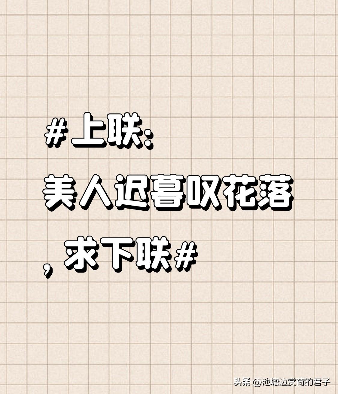 看到“美人迟暮叹花落”这个上联,挺有韵味的,能感觉到那种岁月流逝的惋惜。我对“壮士暮年悲梦残”。美人迟暮,壮士暮年,对仗工整。美人叹花落,而壮士可能就悲自己未竟的梦想了。就像很多曾经威风八面的英雄,到了暮年,看着自己年轻时的壮志未酬,只能叹悲。想起斯琴高娃等老一辈演员,她们年轻时风华绝代,如今也到了暮年,或许也会为演艺生涯一些未完成的梦感慨,这就跟这联里的意境有点像。