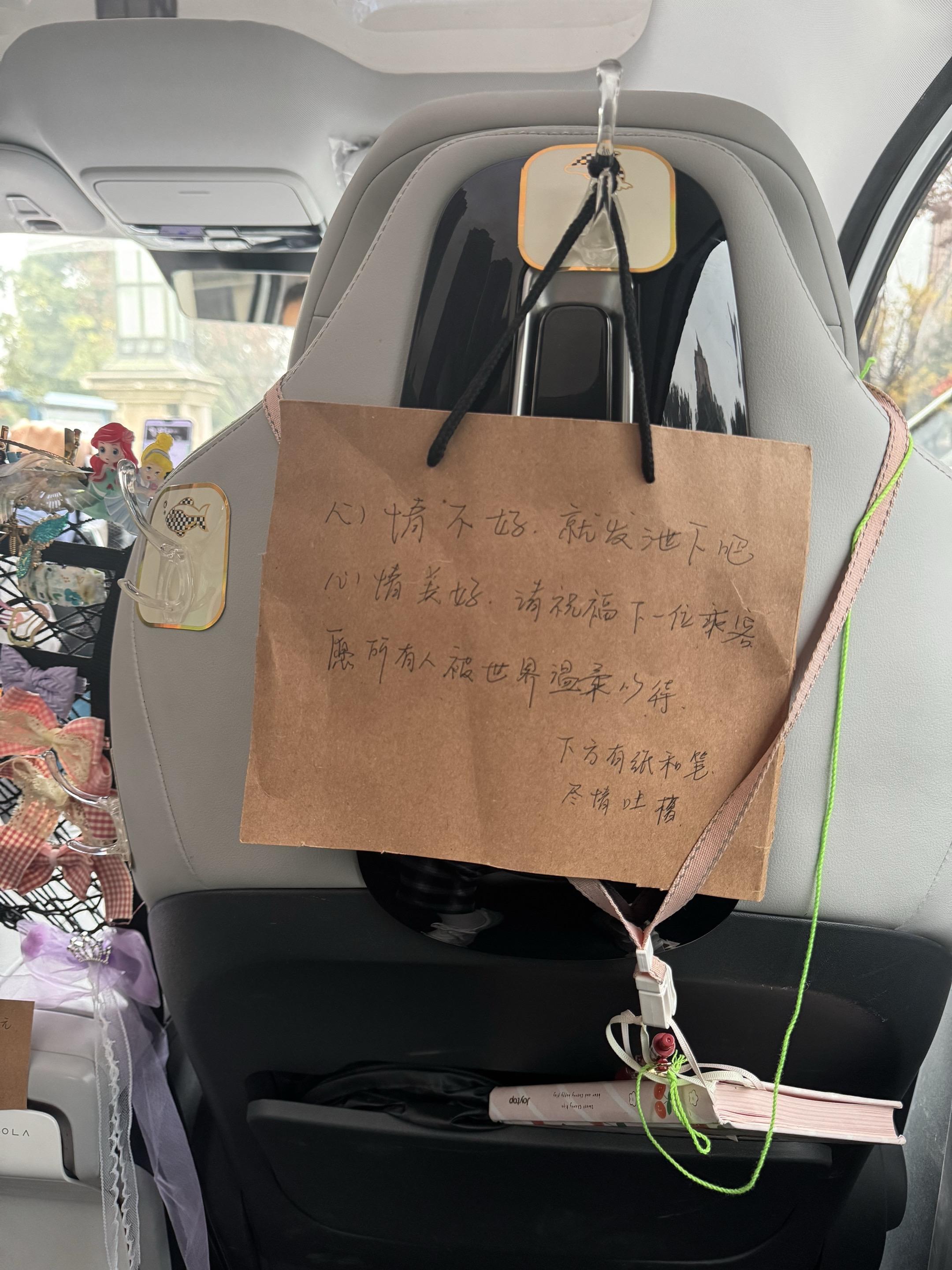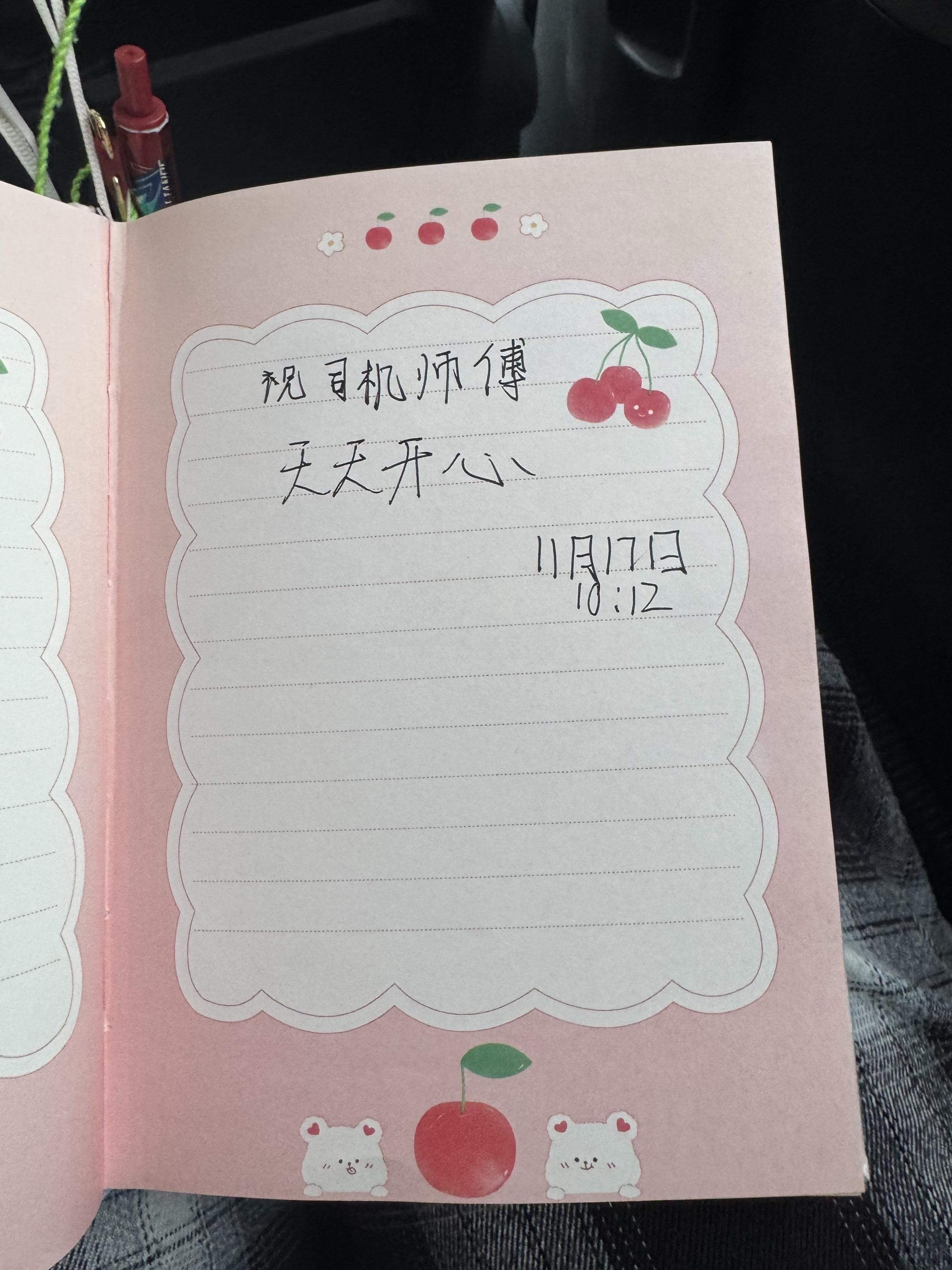 早上打车打到了一辆粉色的小车车。遇到了一个热爱生活的安静不说话的姐姐 她不会像别的司机一样不停的大声打语音 她只是安静坐在这里开车 我也发现了每个人不可诉说的秘密和对司机的祝福