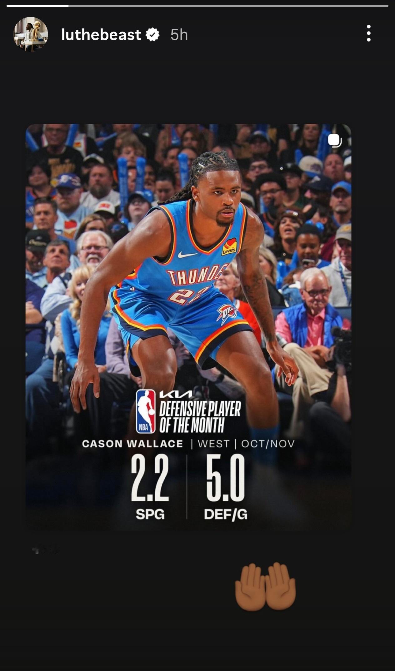多尔特、切特、卡鲁索、杰伦、杰林、索伯、龙、乔、吉昂、米切尔以及卡森的女友都转发了他当选月最佳的帖子,7a还加更一张!雷霆vs勇士雷霆12连胜领跑西部雷霆