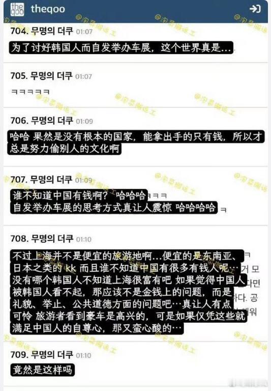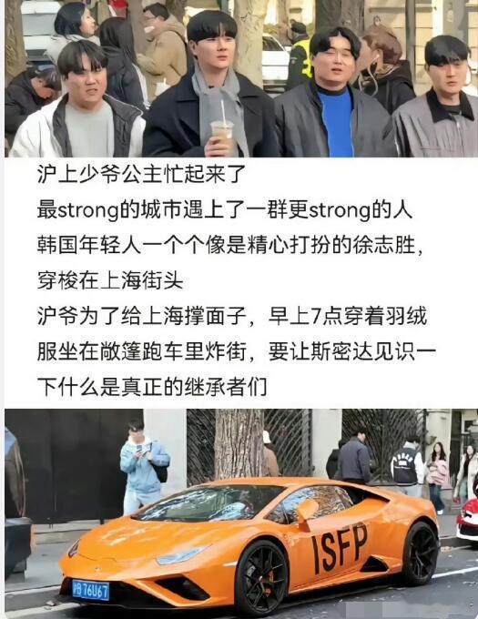 天天整点儿这种匪夷所思的热搜,也是挺魔幻。豪车谁不喜欢?谁能年纪轻轻就买得起豪车?当然啦,含着金勺子出生的那些人除外。然而放眼全球,能年纪轻轻开豪车的地方,好像也就是咱们国内了,各种二代太多咯。就像之前上海外滩的豪车聚会,都给韩国人看傻了。北美也是,年轻人开豪车的,基本都是中国留学生。这就是世界的参差啊……向太 50岁之前不要买豪车韩国人在上海见识真正的继承者们