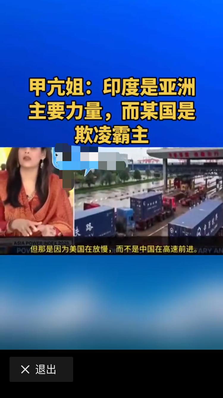 甲亢姐给国民讲了东方大国的故事。不断地骚扰邻国,监视邻国,还霸凌邻国。这样得不到别人的尊敬。 东方大国的发展不是因为他们真的发展,而是因为老美在退步,相比较显得他们在进步而已。 其实,真正发展有作为的是印度,有数据支撑,印度的发展都领先全世界。现在主导世界的势力在恶意的打压印度,妒忌印度的发展。 甲亢姐的这般发言,其实真正的反映了印度领导层真正的思维。