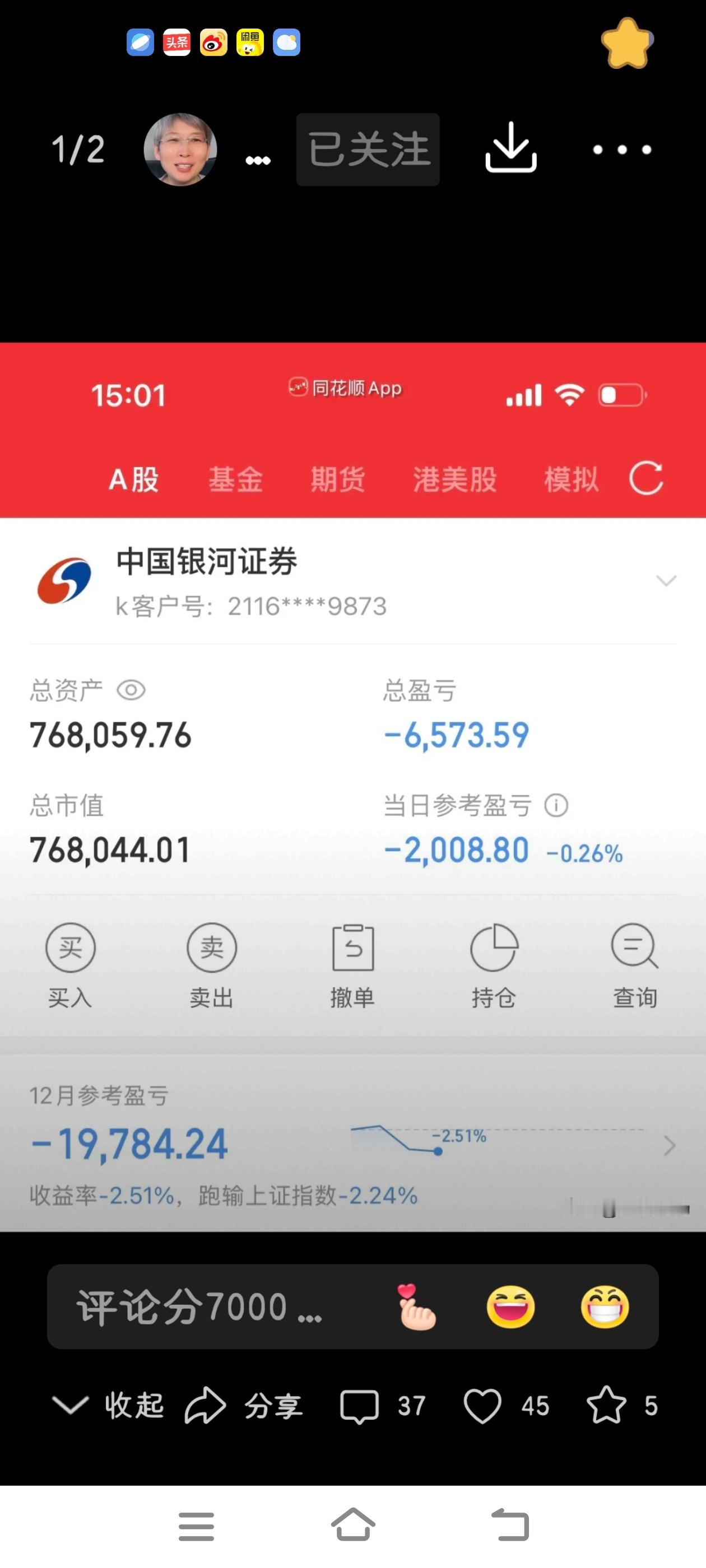 又割肉了,亏了三万多还能果断出手,我着实佩服三爱奶奶。这全然不似一位老人的行事作风,割得那叫一个干脆利落。 割完之后,奶奶旋即买入北证食品概念的股票,速度快得惊人。倘若奶奶这次选对了股票,明天没准就能把今日的亏损补上。