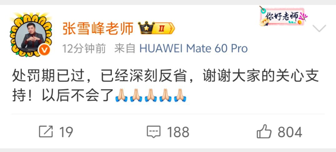 网络名人账号违法违规行为被查越是“大V”越要注意自己的言行举止!大家引以为戒吧~ 张雪峰称已经深刻反省