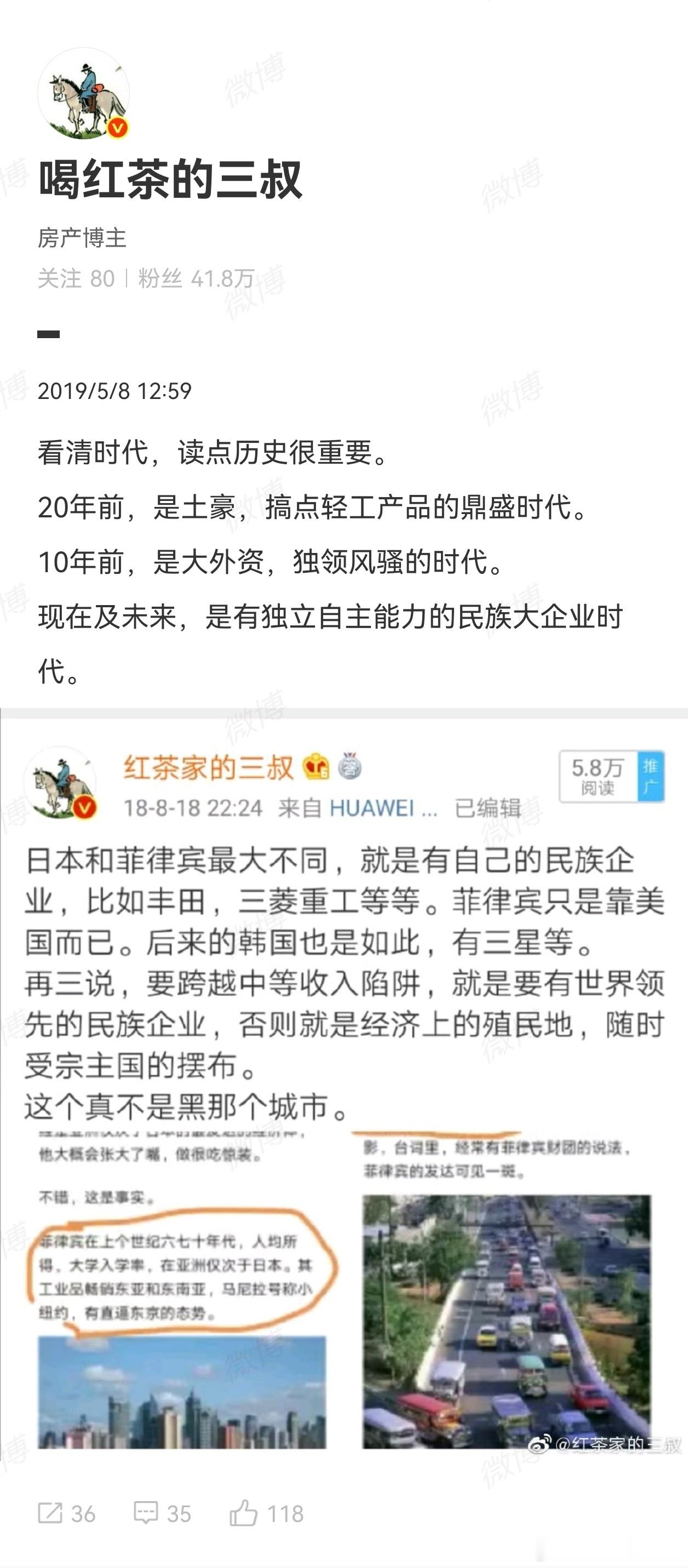 6年前的预测,土豪不行了,外资不行了。现在及未来,是有独立自主能力的民族大企业时代。