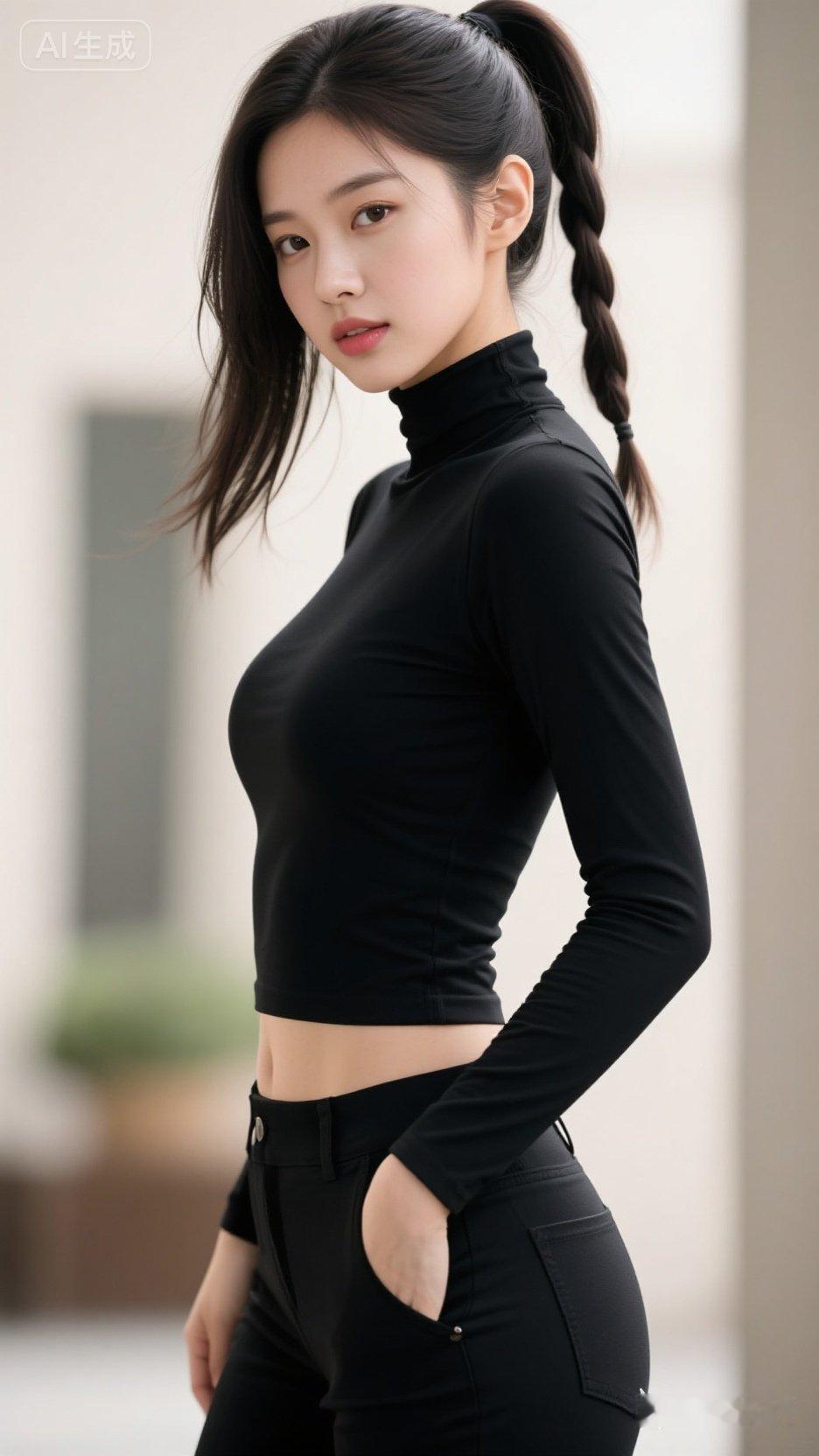 都市酷女孩穿搭指南,黑色高领紧身衣,时尚又性感!