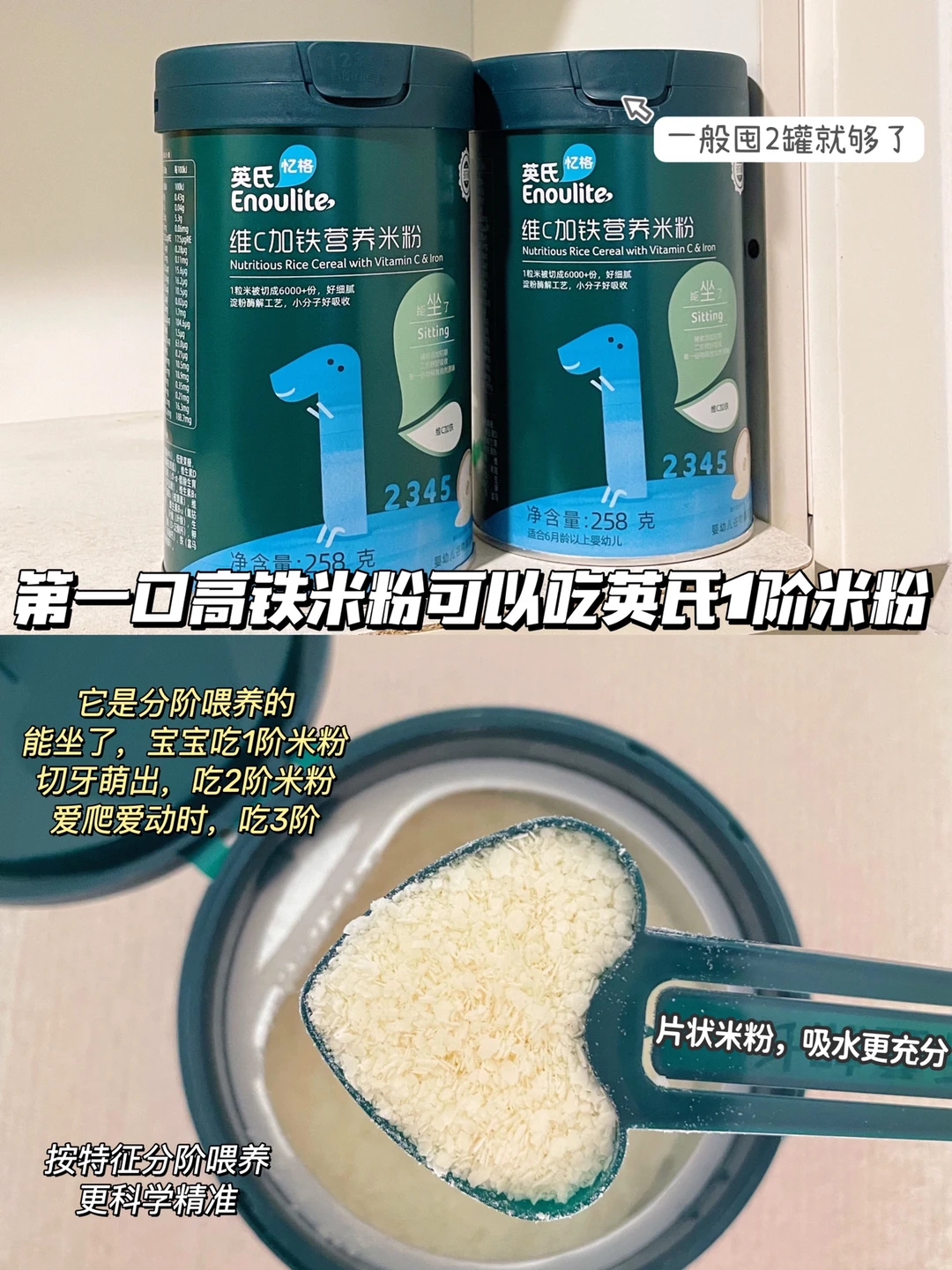 🔹推荐1阶英氏米粉,二价铁铁含量高,特别是口罩期间,还需要补充维C,英氏1阶米粉还富含维C,搭配二价铁也能能帮助宝宝更好吸收铁。