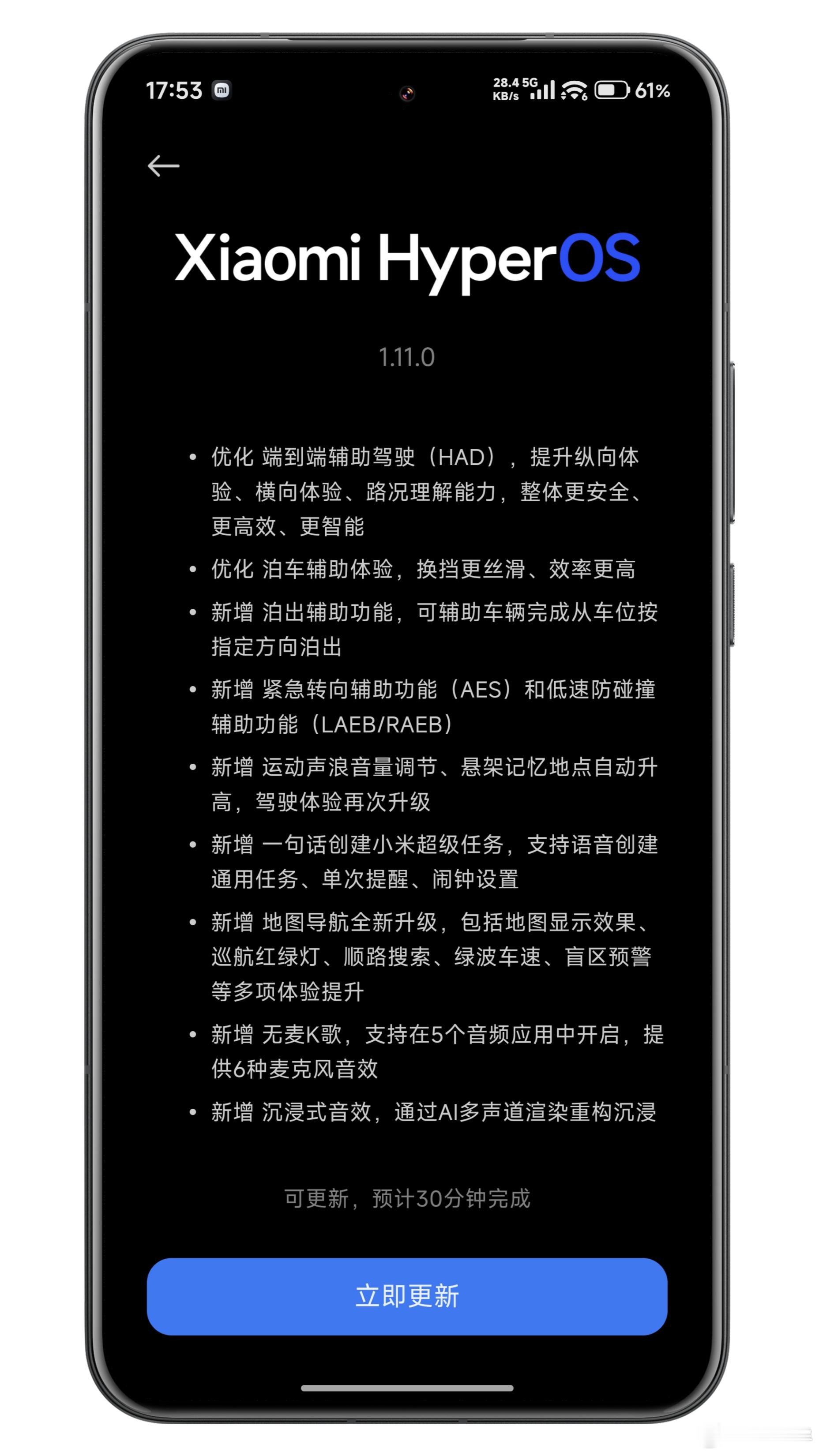 刚刚提到 SU7 获奖 傍晚我的 SU7 刚好收到了 1.11 版本更新,赶紧升级明天要去广州,到时候测试一下新的 ,听说很好用?所以 SU7 都更新了,YU7 要等到什么时候啊啊啊