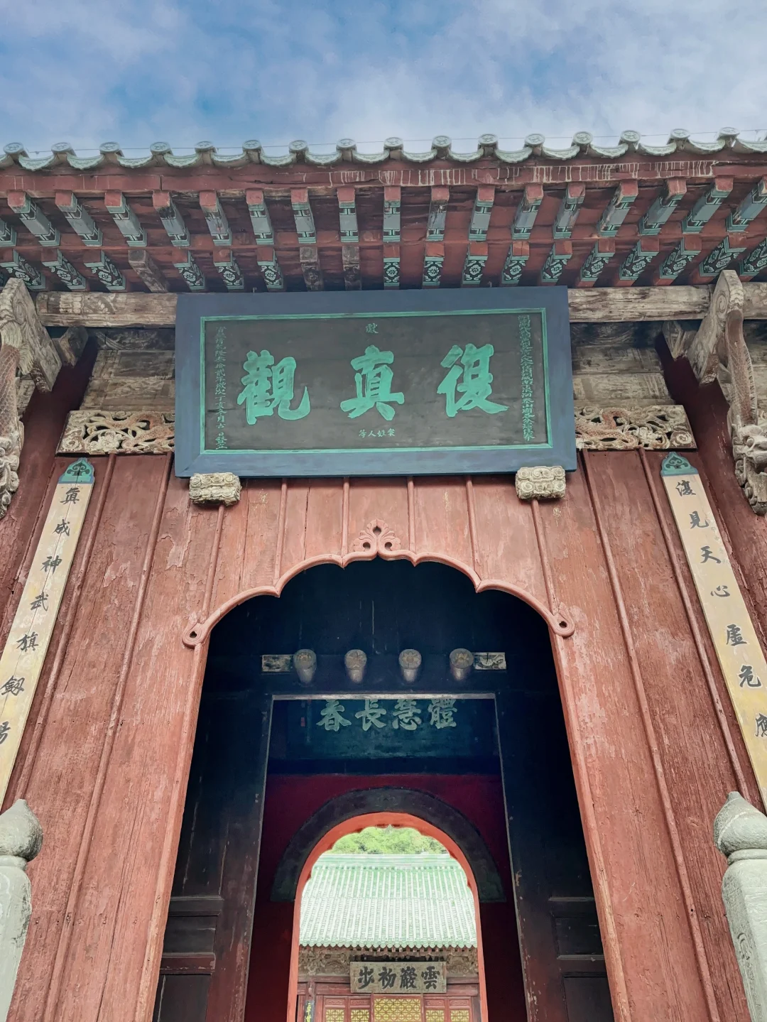 ☯️大殿又名“祖师殿”,是复真观的主体建筑,它敕建于明永乐十年,里面供奉真武神像和侍从金童玉女,除此以外还有复真桥、九曲黄河墙、龙虎殿、太子殿、五云楼等主要建筑。