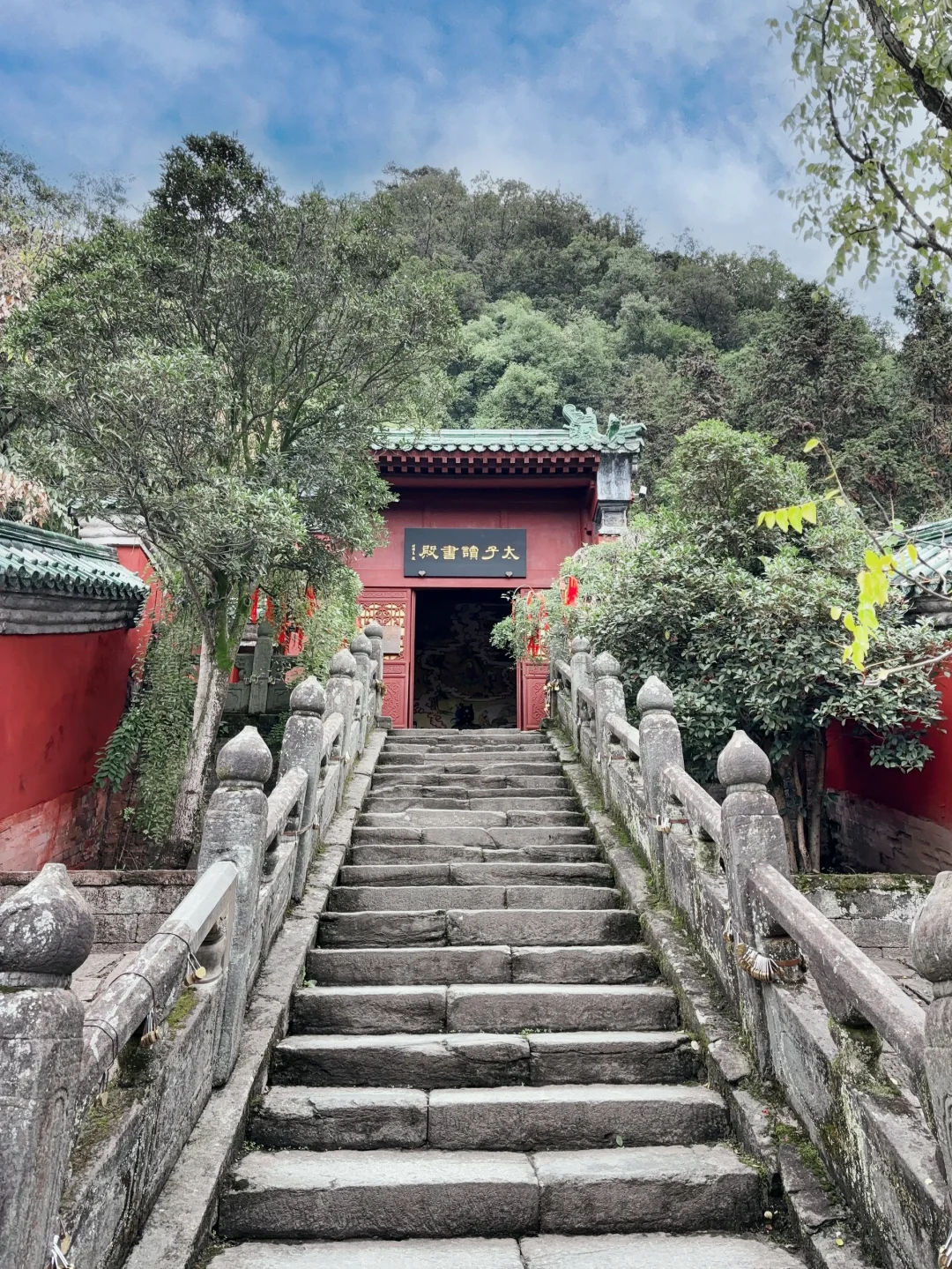 ☯️建筑群蕞高处耸立着明代建造的太子殿,小巧雅致,颇具皇家气派,殿内供奉有铜铸太子读书像,望子成龙的家长们会带着孩子来此求学祈福。