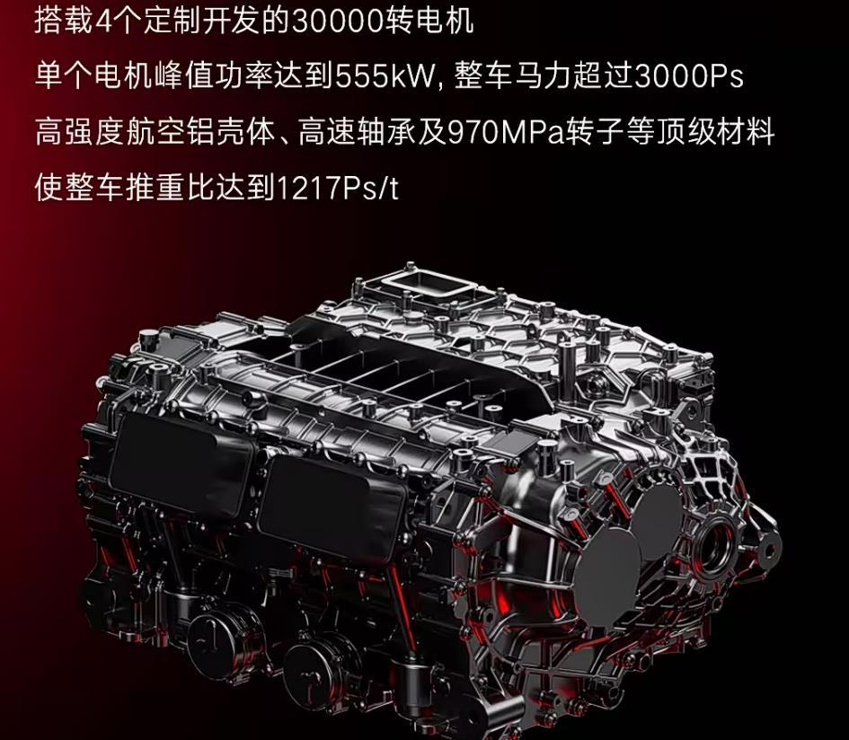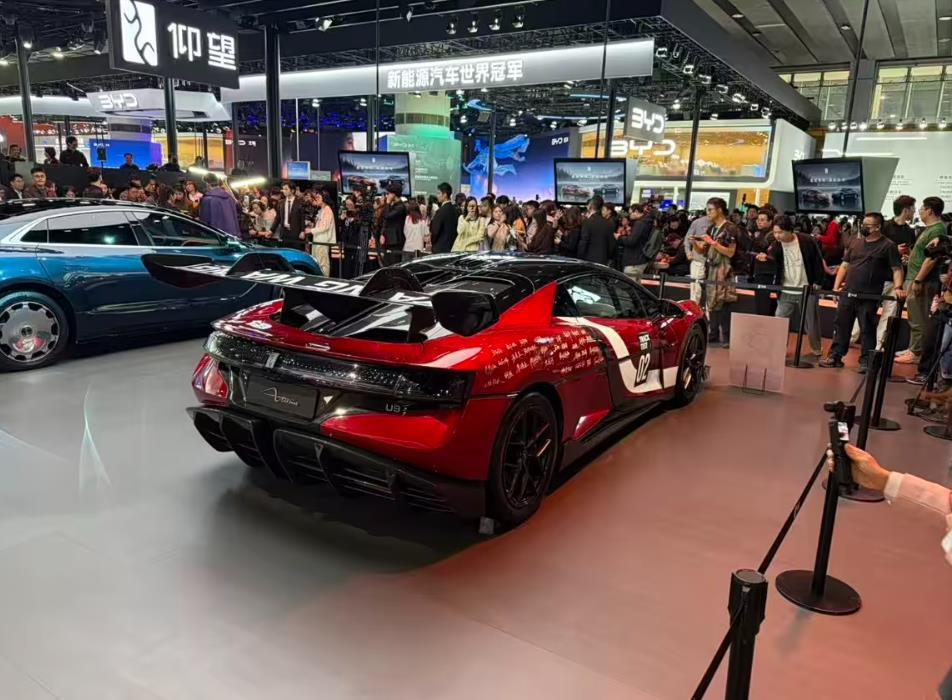 Xtreme亮相,限量发售30台,是比亚迪技术集大成者。其前机盖双贯通,配超大碳纤维前唇扰流板等提升稳定性;前翼子板隆起,标配20英寸轮圈与高性能半热熔轮胎,还有钛合金制动卡钳;空气动力学套件拉满,后窗鳞片式多层结构、大尺寸扰流板及扩散器战斗气息足。底盘采用易四方+云辇 - X技术,可快速独立调节四轮悬架。动力上,全域1200V超高压平台配四电机,总功率2220千瓦,推重比1217马力/吨,还有实现30C超高放电倍率的赛道级刀片电池。