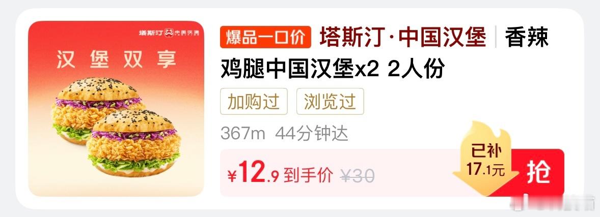 花了12.9买了两份汉堡,居然还能免运费,请铁粉吃一份,一会就开奖 抽奖详情