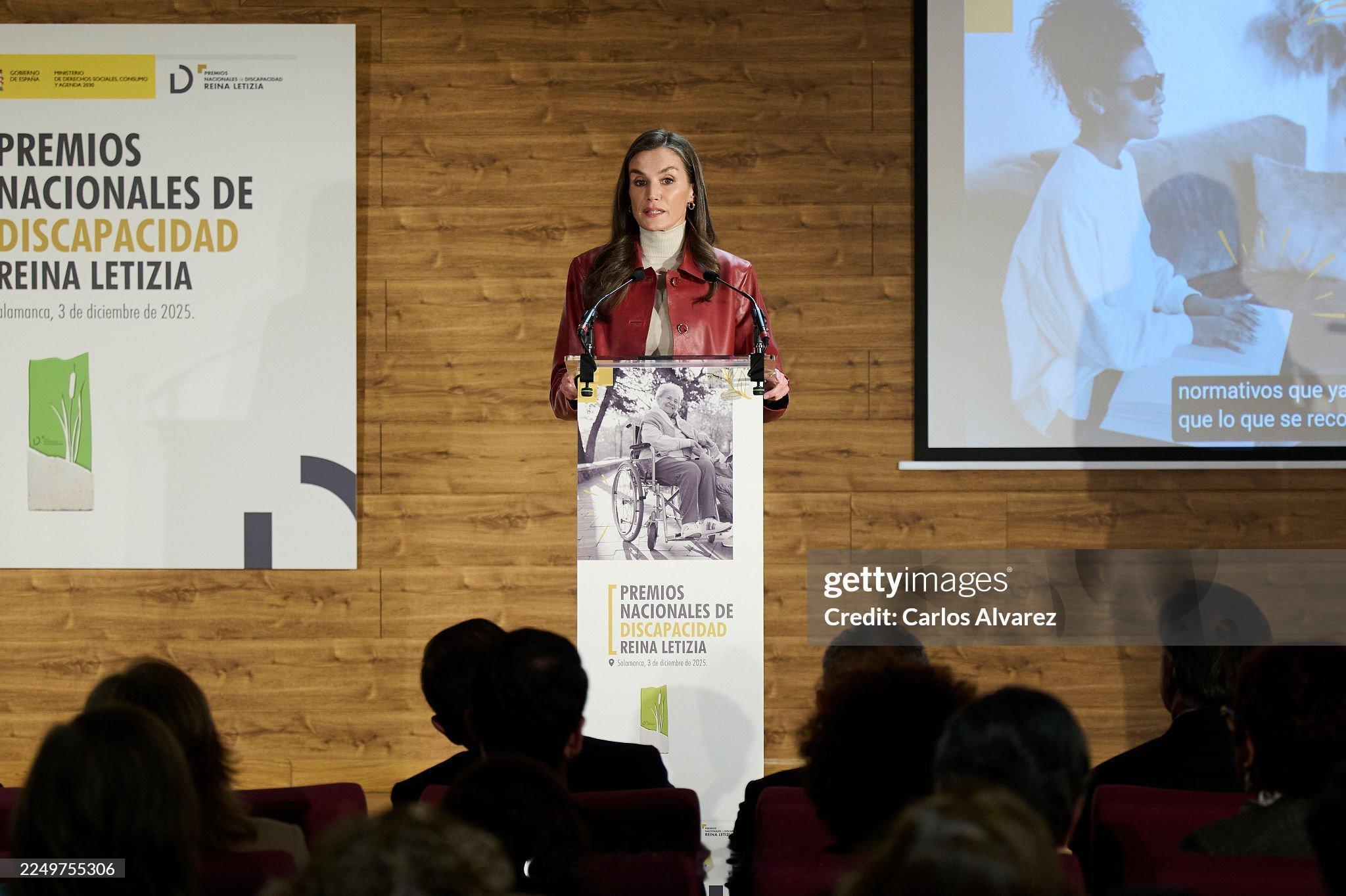 12.3西班牙王后莱蒂齐亚出席颁奖礼,皮衣来自mango
