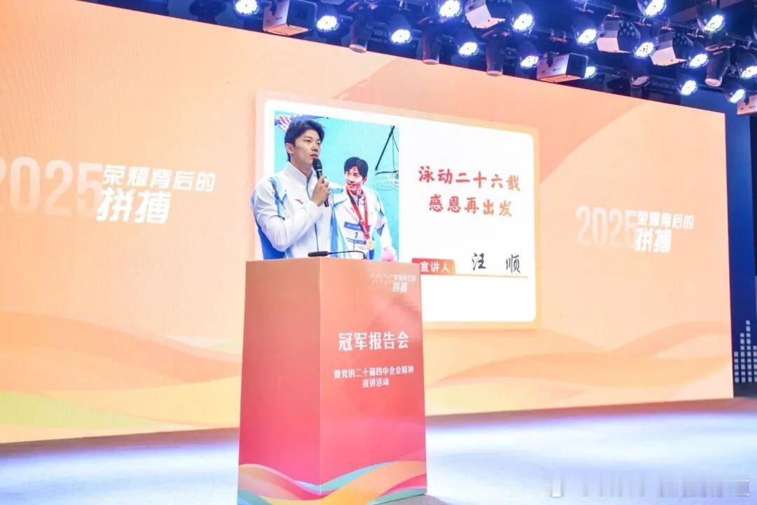 12月3日,宁波市体育局“荣耀背后的拼搏”冠军报告会。汪顺在会上谈到自己的游泳生涯,取得奥运金牌、19枚全运会金牌这些成绩都离不开帮助过他的人。他感谢家乡的栽培,让自己的体育梦在宁波启航。汪顺的第五届全运会顺流而上游泳(来源|体坛报/宁波体育/涌派)