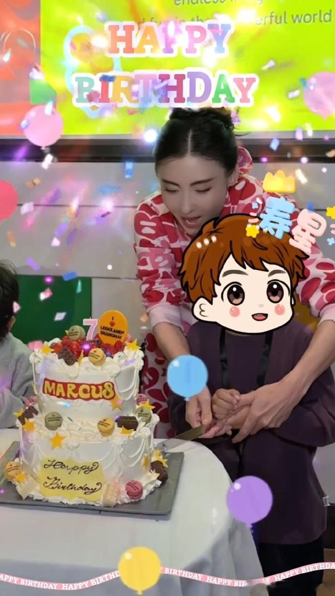 张柏芝为小儿子庆生 张柏芝身穿可爱红色波点衣服庆祝小儿子7岁生日,她把小儿子抱在怀里一起切蛋糕好有爱的母子互动!