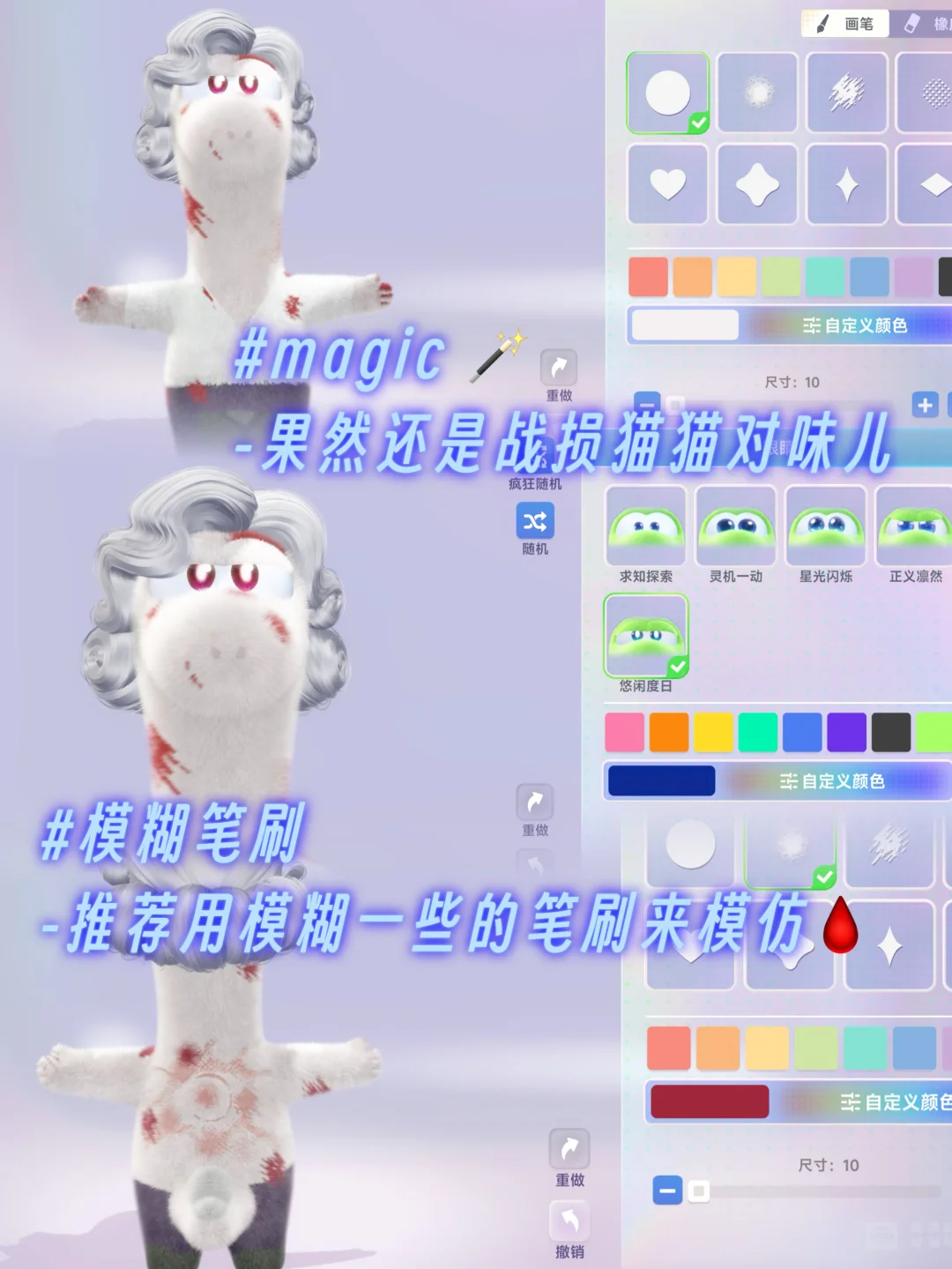 等了好久!《星绘友晴天》首测它来啦~ 主包连夜爆肝,把24D6搬进星绘世界!手把手教你捏出猫猫🐈⬛ ▫️银白色高贵卷发 (游戏里这个发型叫“喊我阿姨”)😅 ▫️红色瞳孔 ▫️战损血迹 ▫️气质关键词:博德之门古老贵族·卷心菜 📌 捏脸Tips: 1️⃣ 先抓标志特征(发型/瞳色/疤痕) 2️⃣ 眼型定气质,涂鸦定灵魂