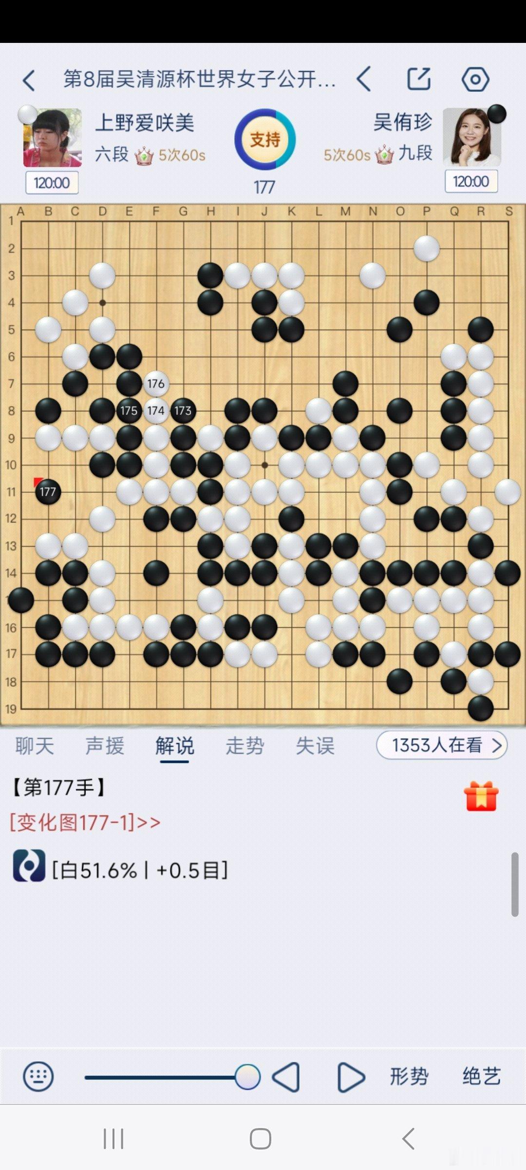 錘妹和阿珍這盤真是一團亂,看得都暈了。阿珍這次吳清源杯的籤運也是史詩級的差。