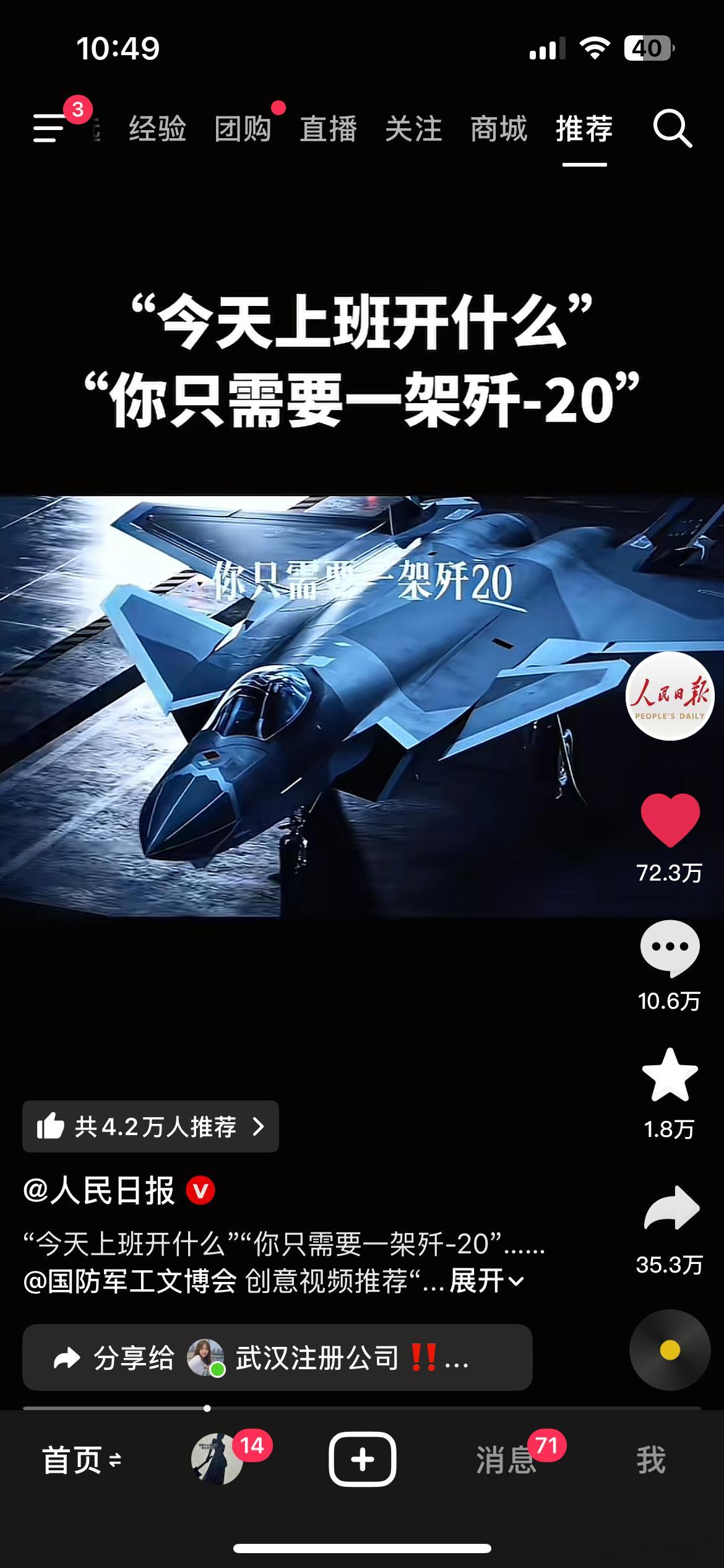 今天上班开什么,歼-20是您不二的选择。一架满载导弹的歼-20,顺利送您异地上班。