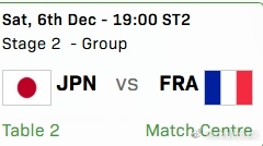 ITTF混合团体世界杯2025张本智和 第二阶段循环赛251205 19:00 日本 Vs. 韩国251206 12:00 日本 Vs. 中国251206 19:00 日本 Vs. 法国