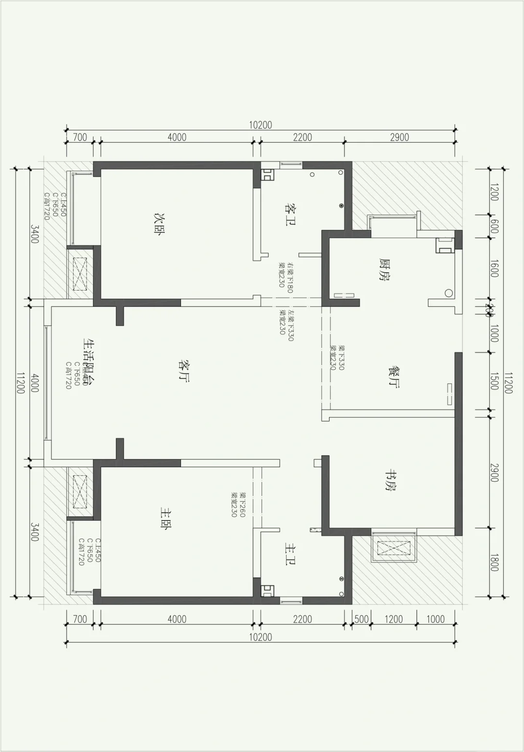 户型优化|48期-70 ㎡三居室变二居室-3版方案