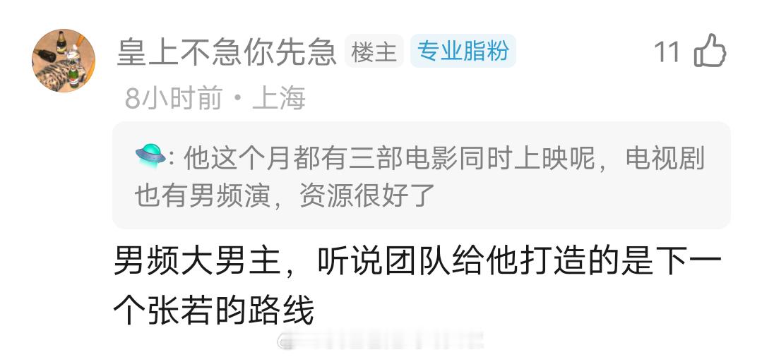 刷到粉丝说彭昱畅个体户资源差,他一直是90生里电影资源最多的吧。糊糊时期常驻国民级综艺向往的生活,电影搭肖战,电视剧合作王凯,有男频大IP异人之下,团队一直想把他打造成下一个张若昀,这样还算资源差吗?