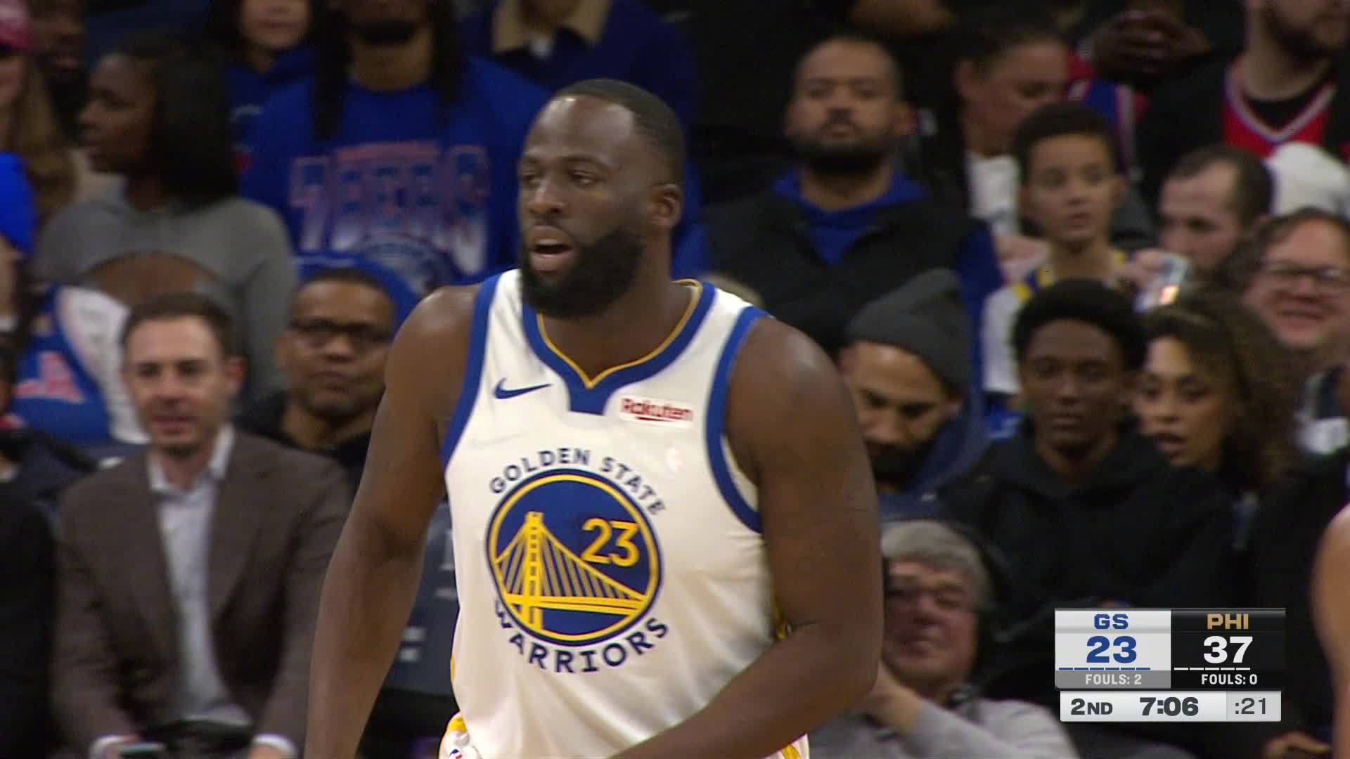 格林侧翼三分!!!勇士23:39费城76人。勇士vs76人