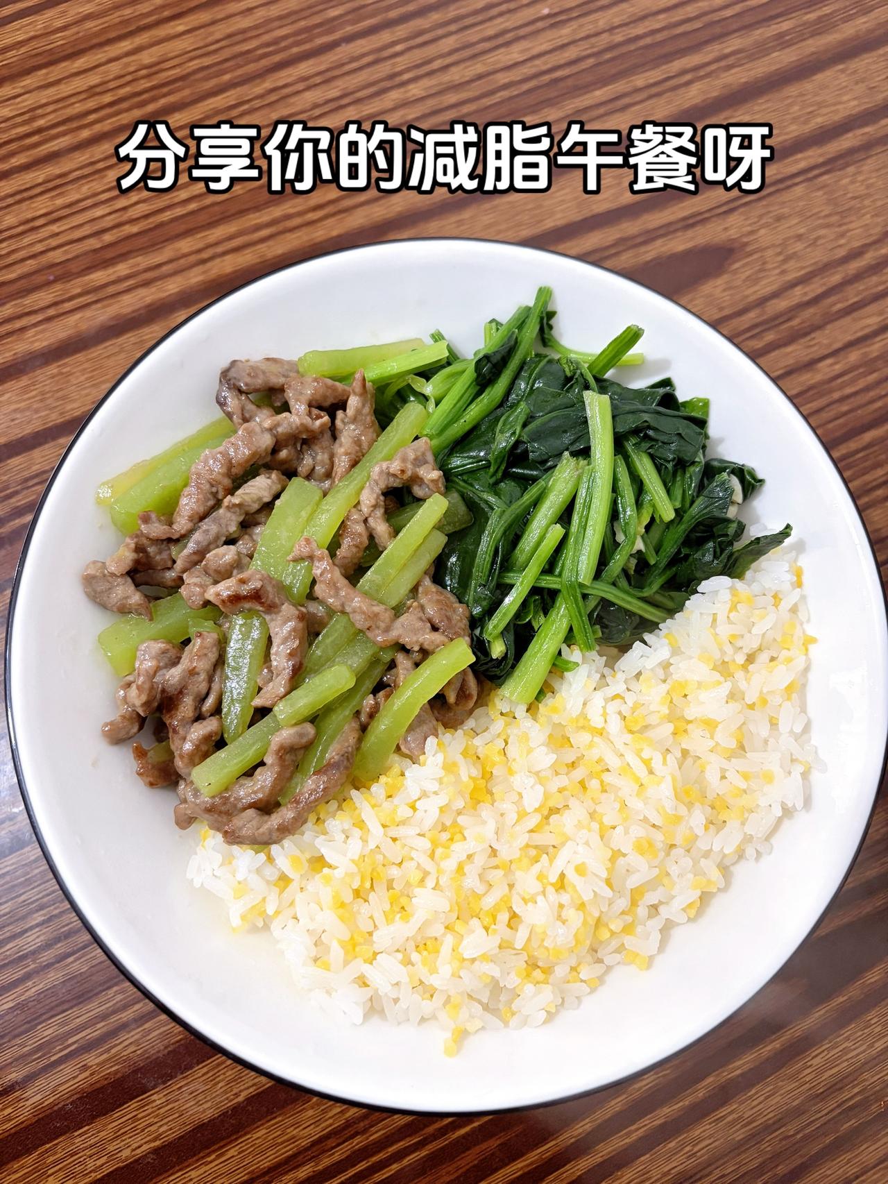 最好的减脂餐就是家常菜,目标103斤,加油 今日减脂午餐:莴笋炒牛肉+素炒菠菜