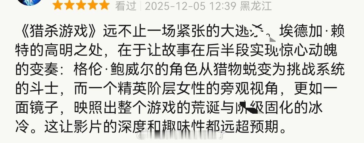 猎杀游戏今日上映猎杀游戏上映《猎杀游戏》今日上线,反乌托邦片井喷后终于等到的惊喜!男主GlenPowell帅到挪不开眼,身材和演技双杀,更绝的是立意,把娱乐至亖的刺扎得又准又狠,爽完还能嚼出劲儿,这才是真·好看又有料
