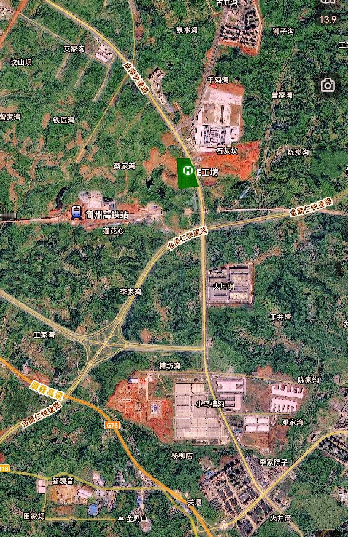 简州新城:E工坊一期项目主体封顶了!E工坊项目位于成简快路与金简仁快速路交叉口,紧邻成渝中线高铁E工坊后侧就是成渝中线简州高铁站。