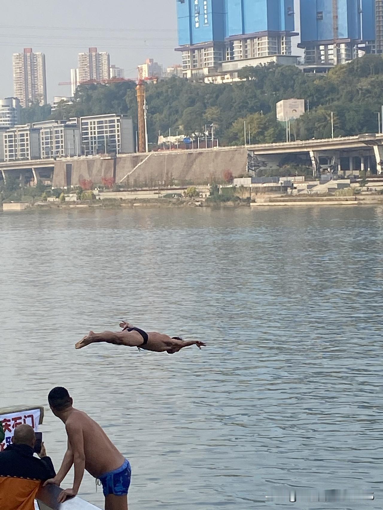 今天下午,山城喜现阳光,午睡后去嘉陵江边散散步,又遇石门冬泳队的大爷大妈跳水秀。 可别小瞧石门大桥下跳水那帮老家伙,连著名国家跳水名将高敏都来参与,并指导过这些冬泳爱好者。 今天没有见到“络耳胡”和那个年轻妹儿“苏菲的号”,还有那个油嘴滑舌,吊儿郎当,满口重庆水流沙坝脏话的崽儿,有点遗憾。 石门大桥下,最早以前,是中渡口车渡码头,后来有了桥,又成货运码头。如今政府迁走码头,建成了嘉陵江滨江休闲公园,而跳水台,也在这里。 凡风和日丽,大家都喜欢来此观赏跳水,顺便打望“嘉陵小渡”观光轮船。 每当“小渡”经过跳台,那些冬泳者就象打了鸡血般兴奋,向“小渡”挥挥手,然后一跃而下。 今天有个女队员,还来了个360度转体跳,喜剧惨了。 总之,到这里观跳水,无论跳的人,看的人,还有“小渡”上的观光客,大家都很高兴。 这样的生活,就是岁月静好。