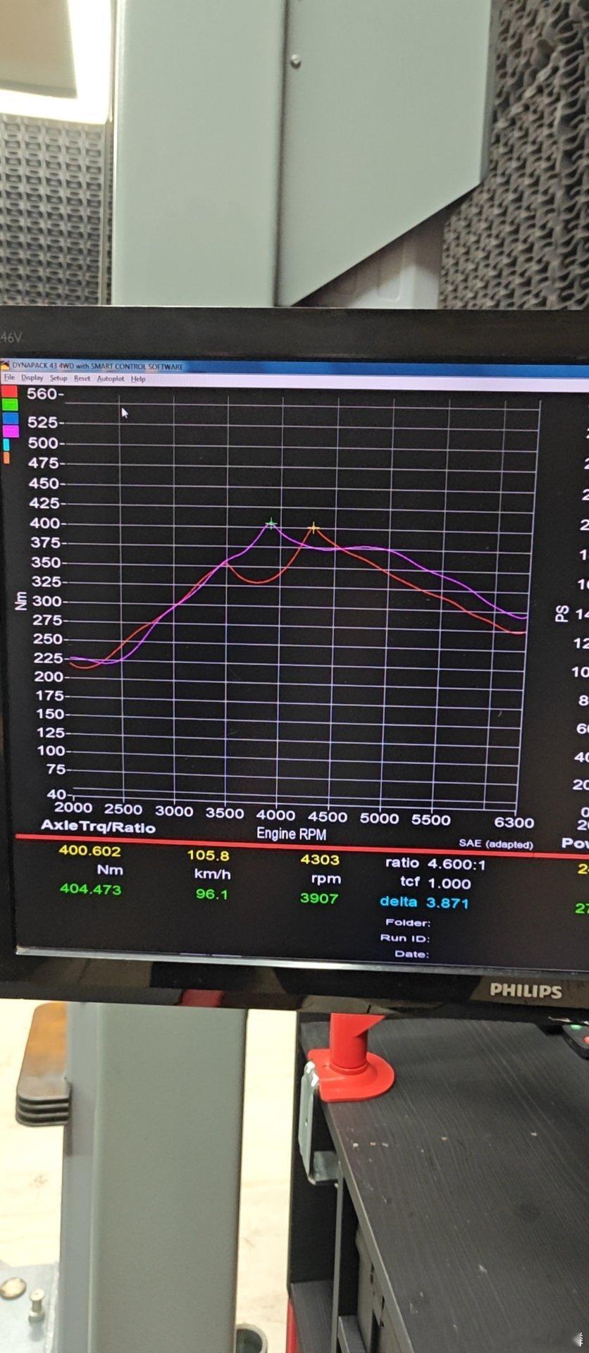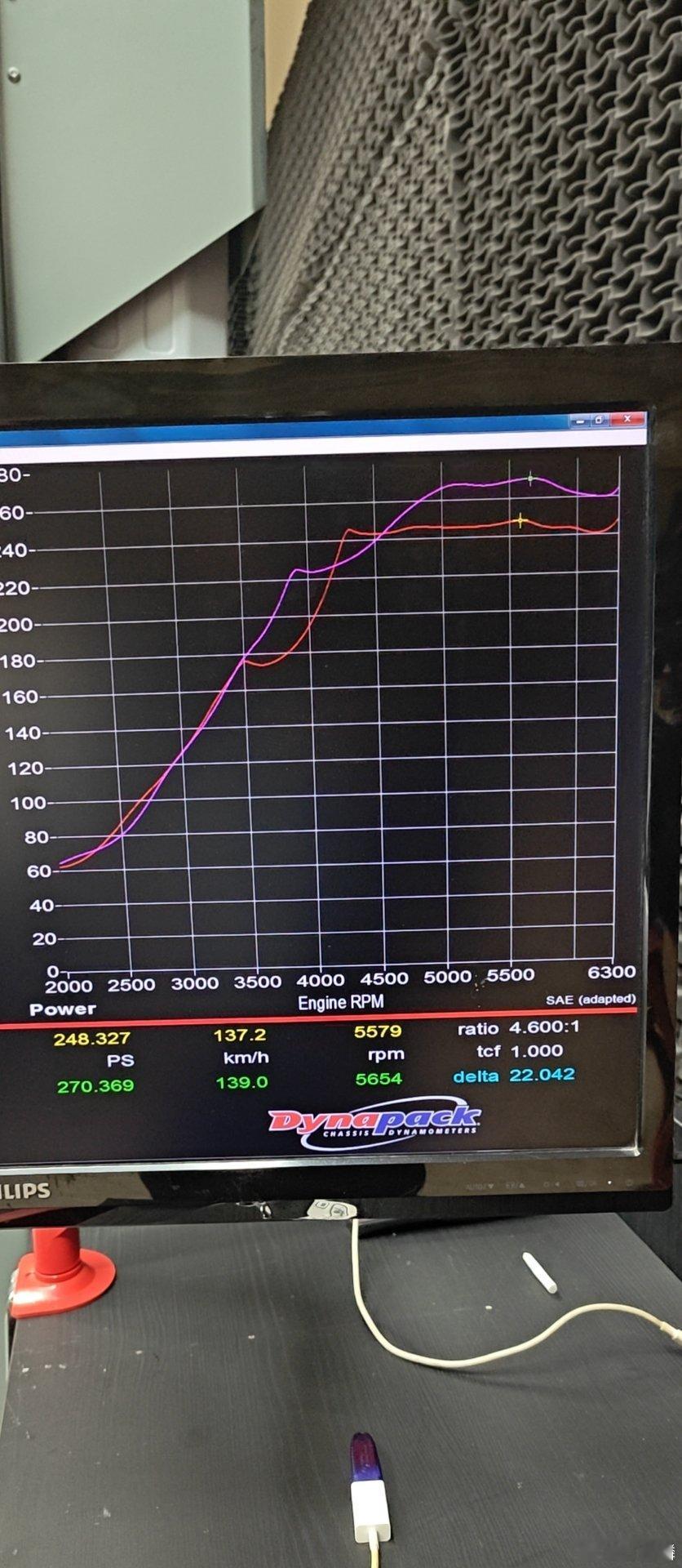 分享一下GR雅力士在去除GPF以后的变化,图一就是只去除GPF,不做任何程序的变化,提升了15匹左右,首先是原厂的中段有个低谷完全消失了,更重要是原厂马力后段的直线也没有了,马力开始上升了,毕竟GPF高转的时候阻力是存在的,去掉以后明显呼吸顺畅了。图二图三是GPF摘掉的基础上再加eventrui风箱的马力输出,同样是原厂程序只是屏蔽相关的故障码。