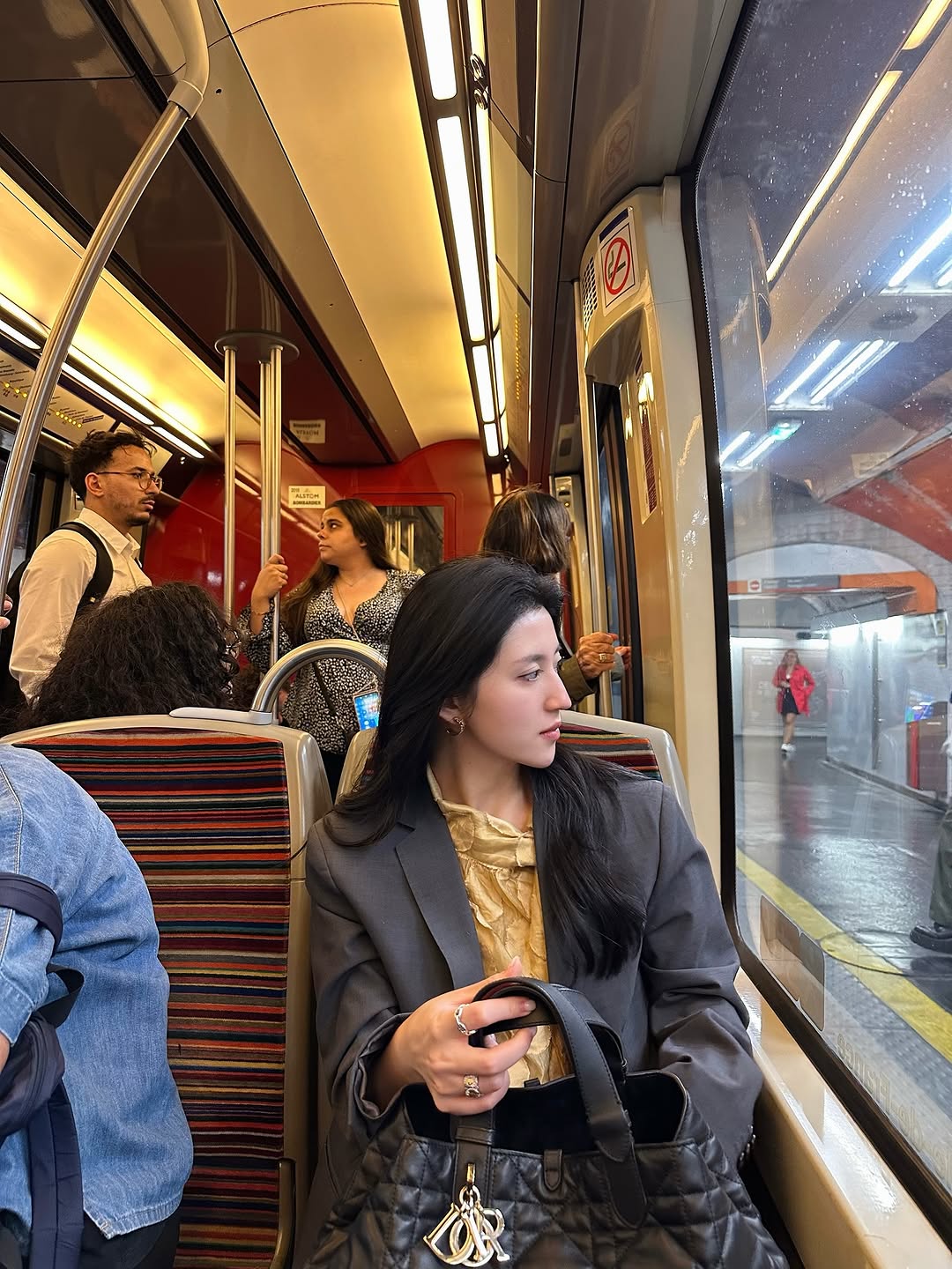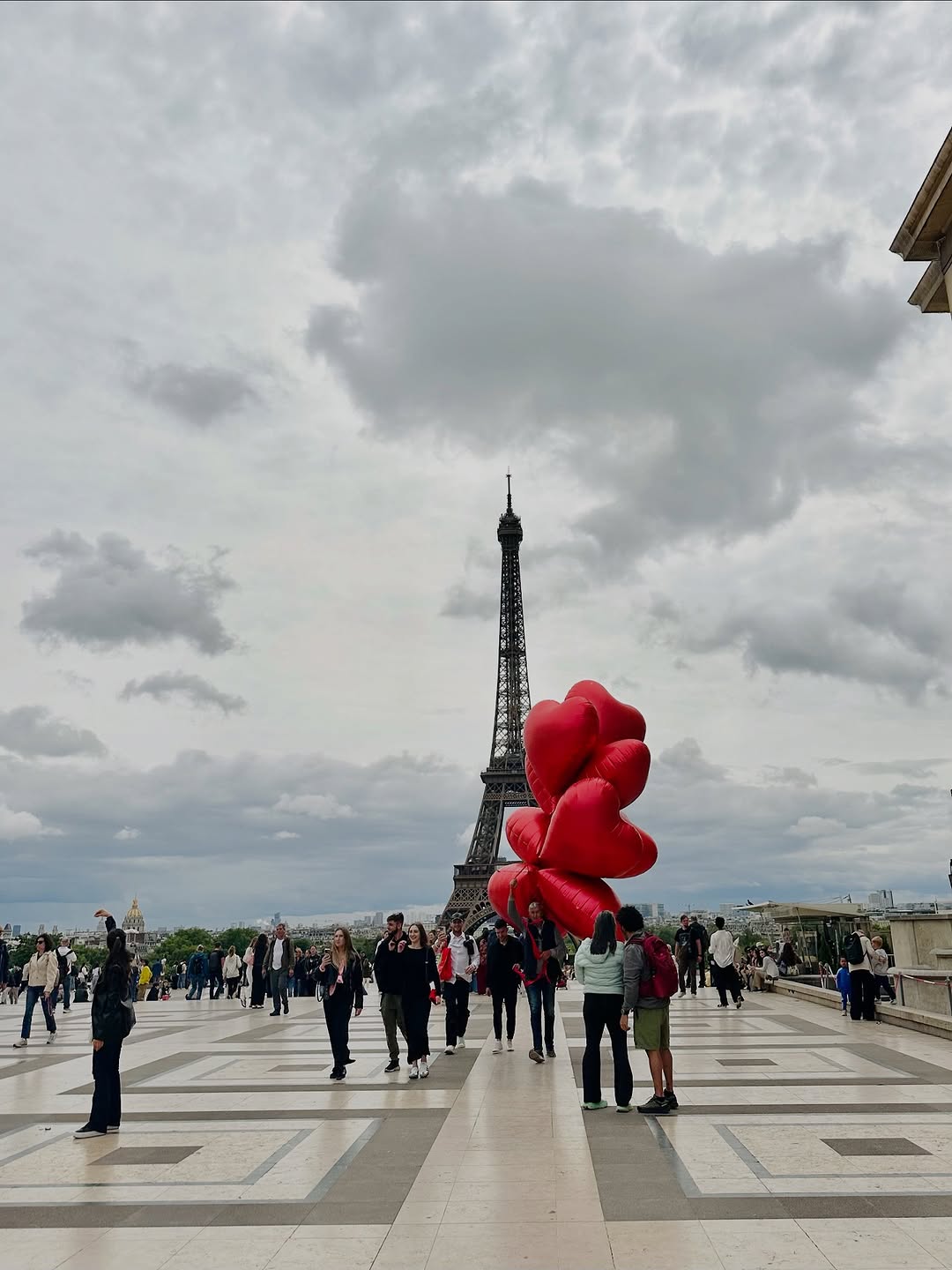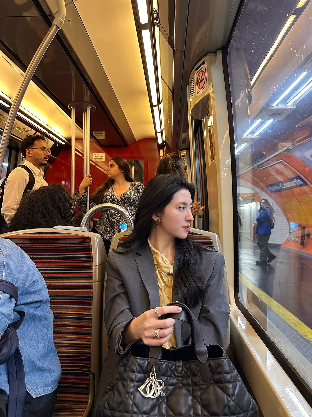 在巴黎街头,蓝衣女子漫步,优雅迷人。