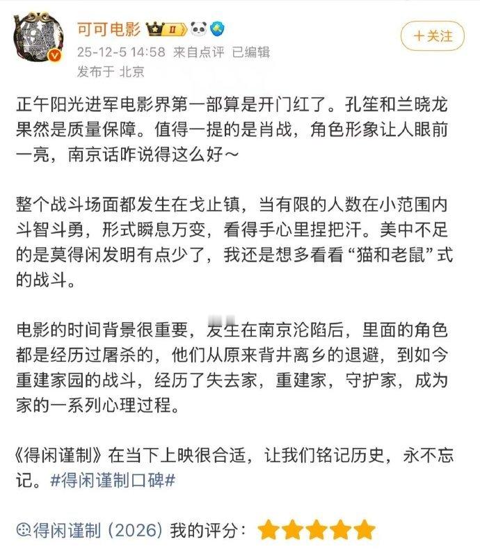 评价好高!得闲谨制第一观影口碑太好了忍不住了,明天等着我去把你看了!肖战为电影唱