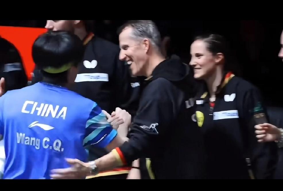 混合团体世界杯 今天与德国的比赛结束后, 弗朗西斯卡与楚钦握手后又双手抱着他的胳膊不知道两个人说的什么, 旁边的教练更是一把拉过楚钦, 有种感觉就是想抱一下大头。 感觉真的很多外协都很喜欢王楚钦, 而他在一盘失去两分后, 我们国内的黑子们闻着味就来了。 先不说他打了多少场比赛, 单就说团体赛也不是只打这一盘。 假如真是五局三胜制或者是七局四胜制结果可不好说, 再退一步说, 竞技体育谁能一直保持全胜呢? 有问题总结, 人家也意识到有问题了, 何必黑了又黑呢!