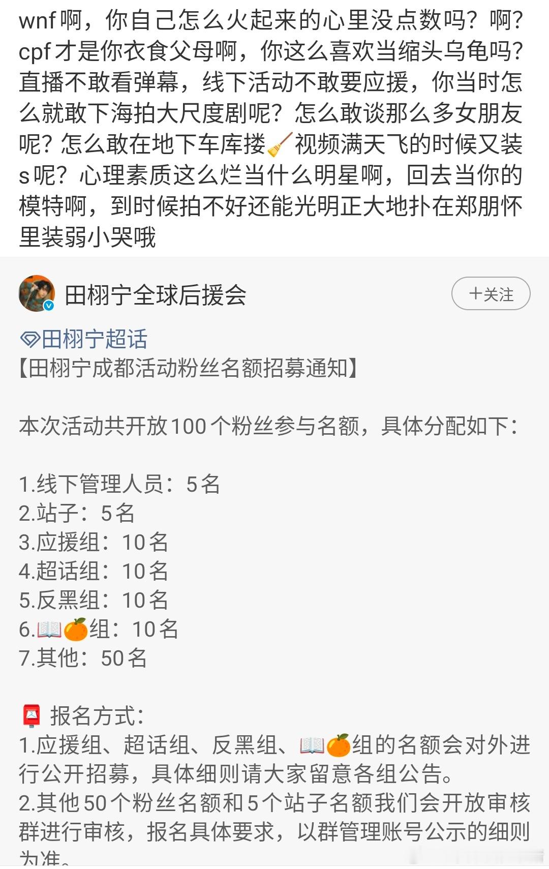 田栩宁活动线下审核粉丝要求唯粉,cpf 不乐意了,好可怕,直接贴脸了