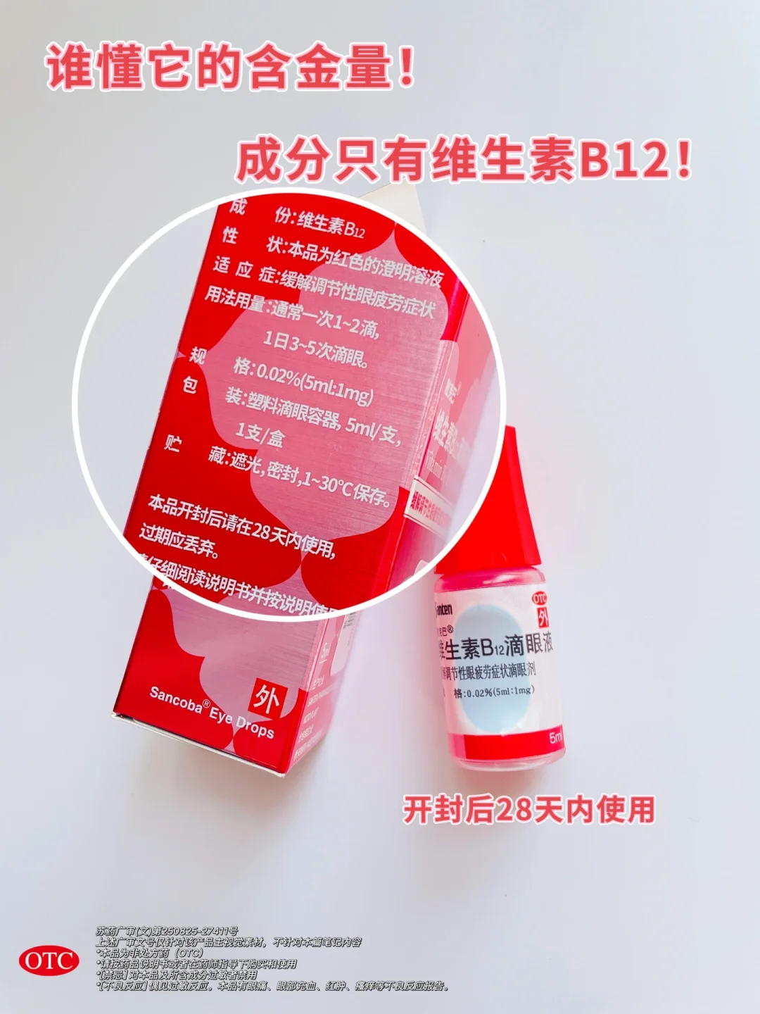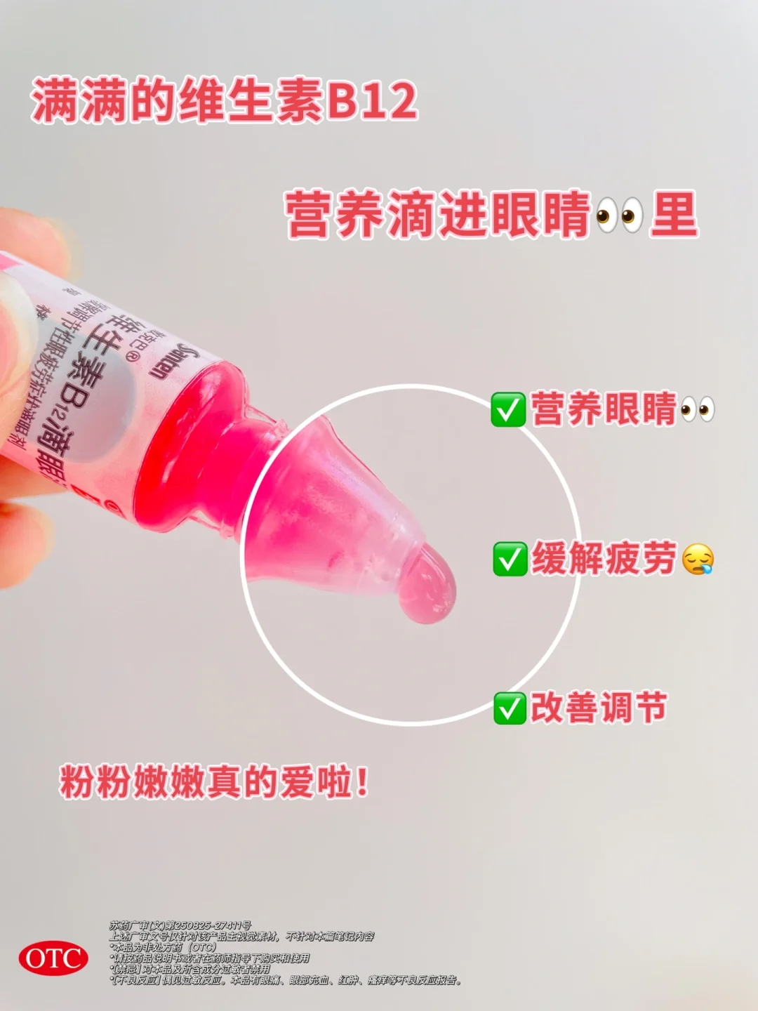 成分只有维生素b12,没有其他什么乱七八糟的成分,给眼睛提供满满的营养,小小一滴入眼温和不刺激。坚持打卡,改善眼睛调节能力,缓解眼睛疲劳!漂亮眼氛围感轻松拿捏!