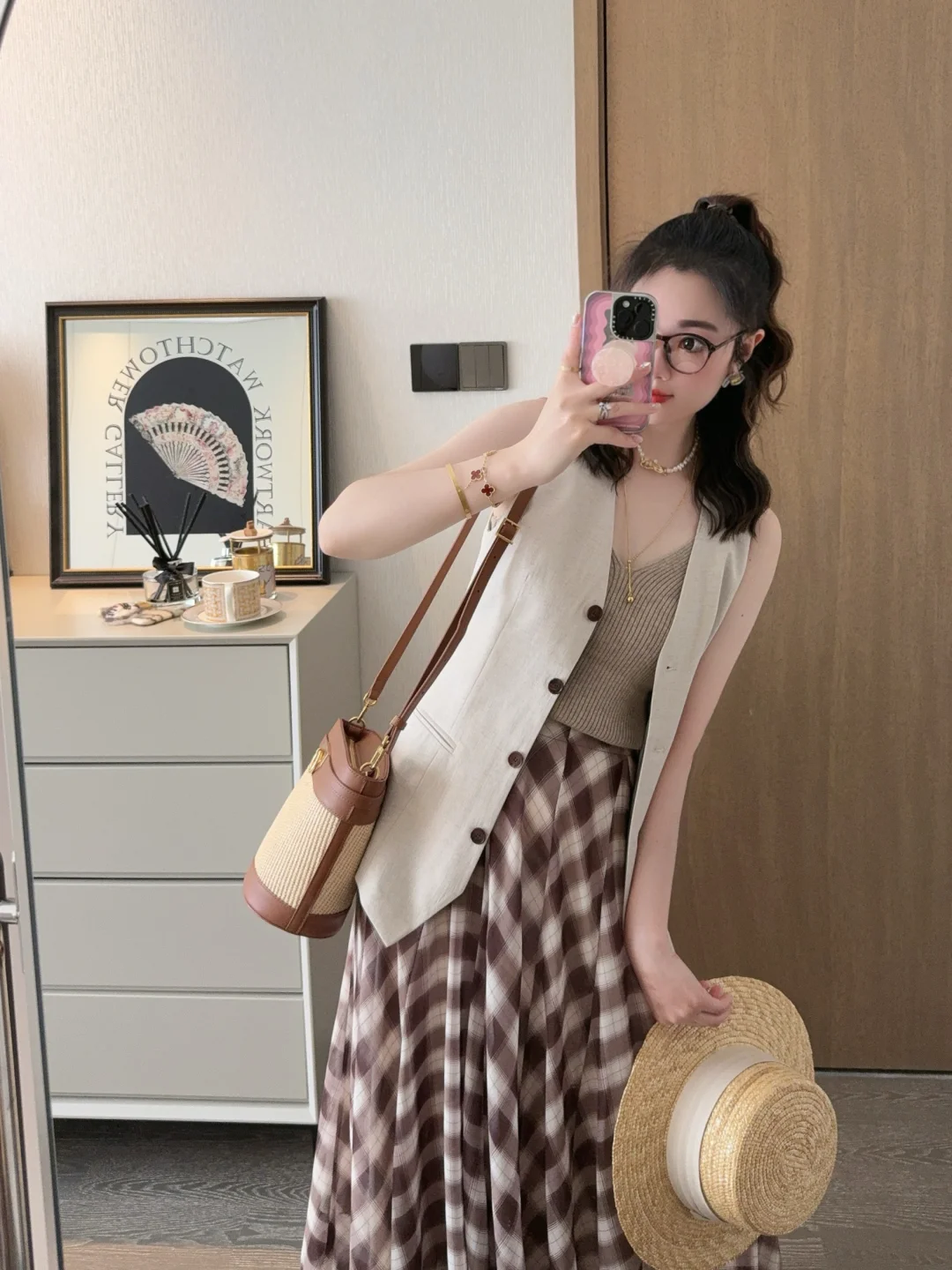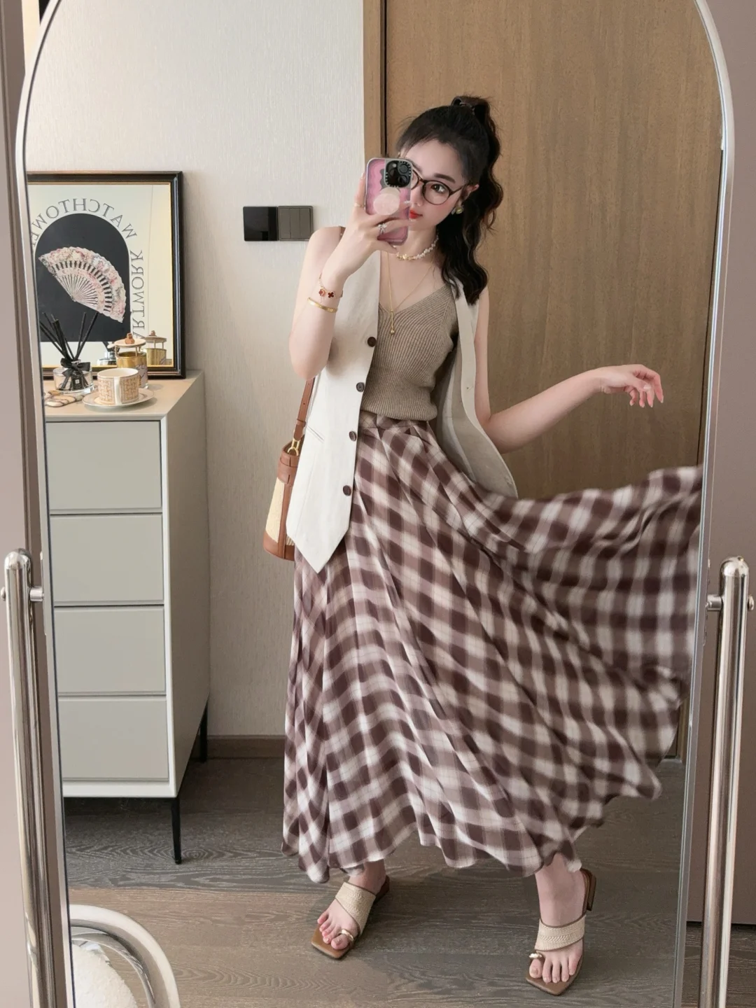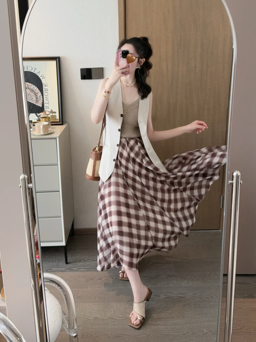 今年被各种漂亮的马甲套头了!今天的可露丽穿搭彻底爱上了耶😍 格子裙我的菜! 大家周末都在干嘛呀🎈