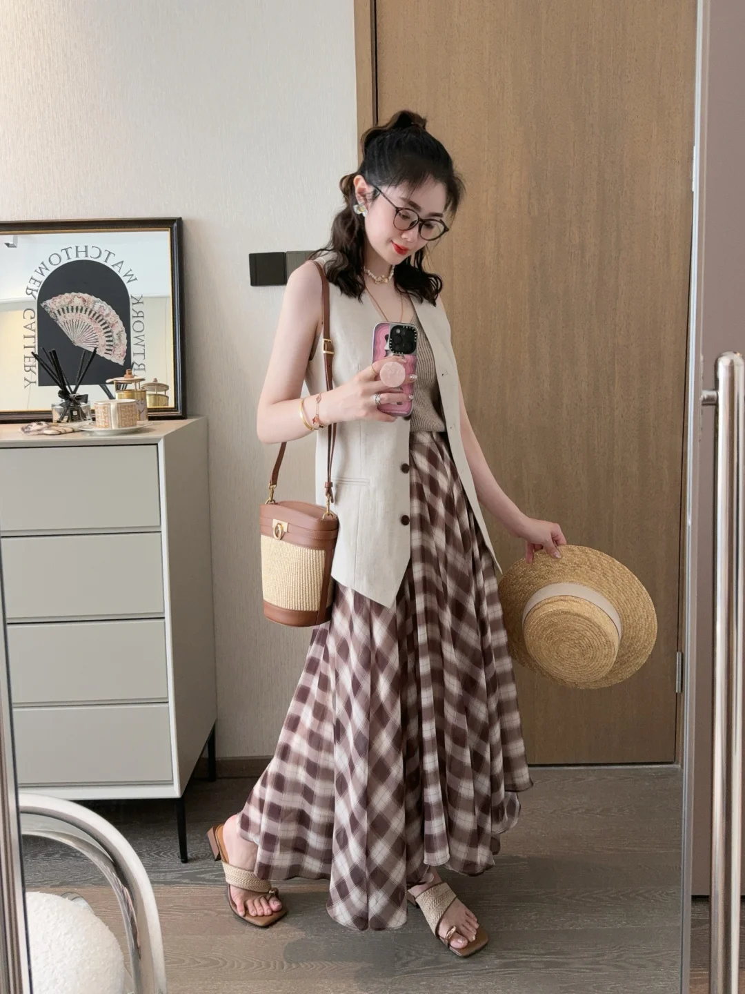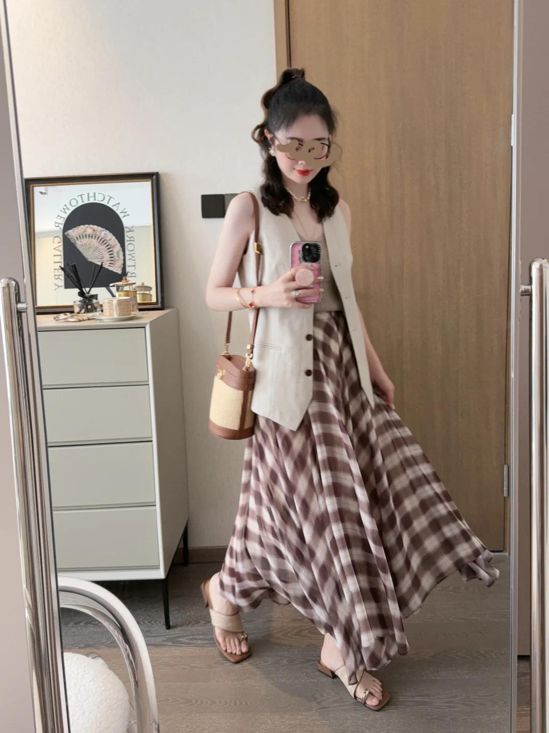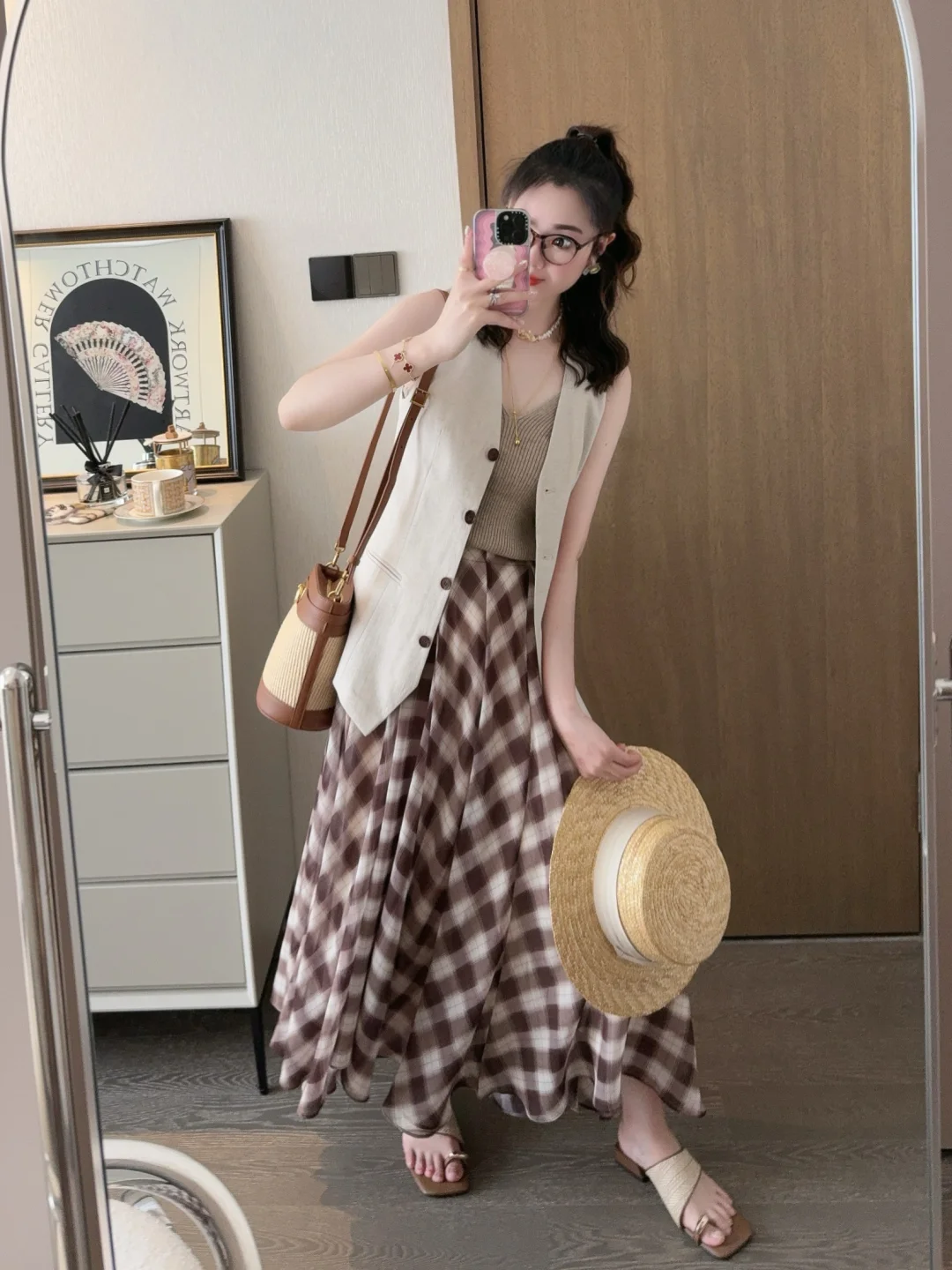 今年被各种漂亮的马甲套头了!今天的可露丽穿搭彻底爱上了耶😍 格子裙我的菜! 大家周末都在干嘛呀🎈