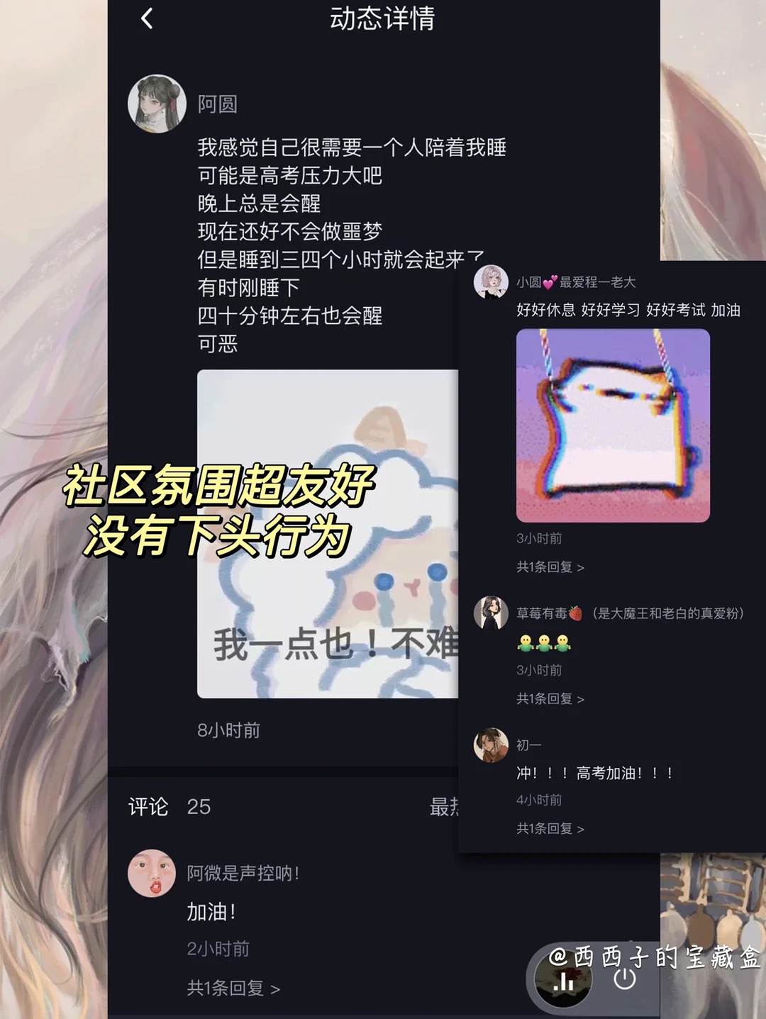 一直让我觉得很温暖很舒适的就是这个空间没有下头行为,❤️友爱互助的氛围感真的太棒了~