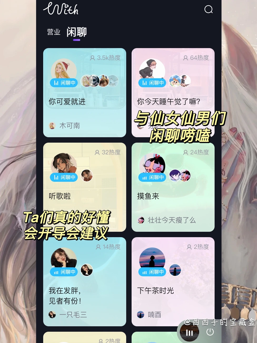 😔不开心的时候也会进入闲聊区与其他🧚🏻♀️小仙女们聊聊天,她们真的好懂,😄会开导会建议,[派对R]每次走的时候负面情绪已经被清的干干净净啦~