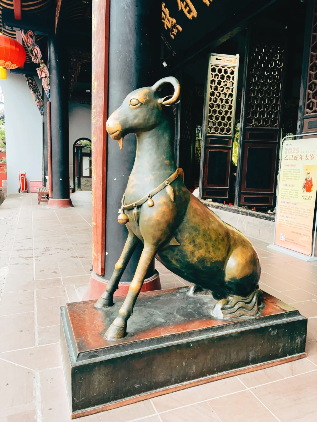 🐐三清殿前有两只铜铸青羊,它们是青羊宫的镇馆之宝,左侧为单角青羊,右侧为双角青羊。