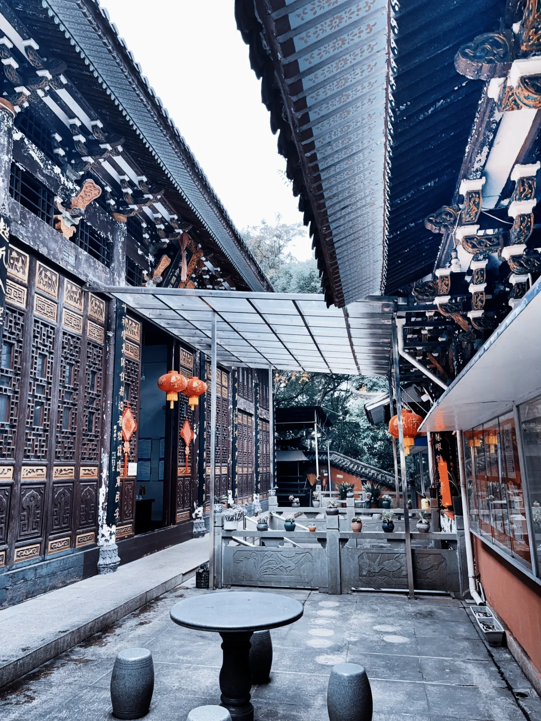 [仙女R]这里曾是温州道教中心,也历经多次重建,目前的资福道院为二进仿宋建筑,占地面积七百余平方米,包括主体建筑三清殿和三官殿,以及云房、经堂等建筑设施。