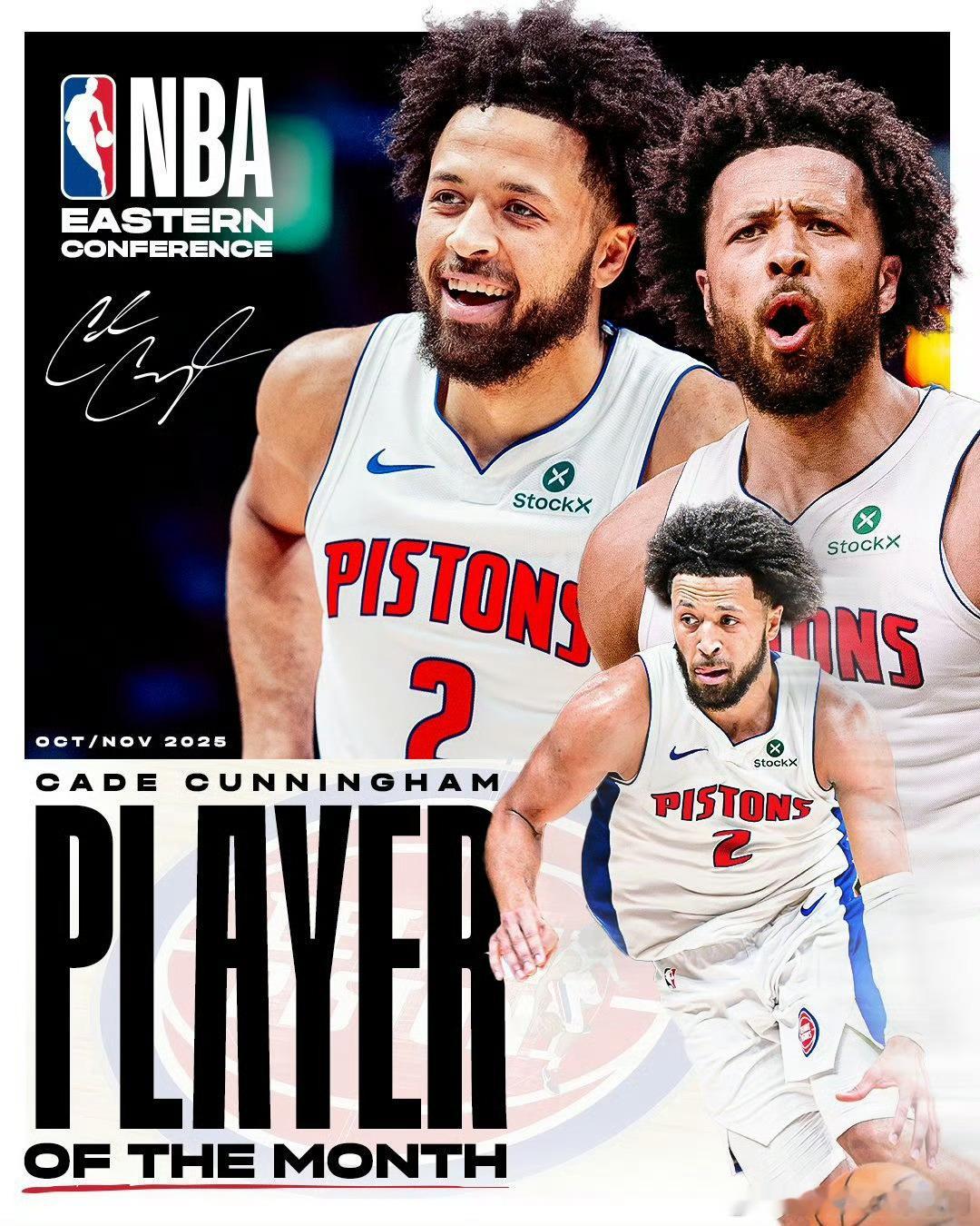 坎宁安当选东部月最佳球员。目前活塞已经来到东部第一的位置!你敢信吗?东部变天太快了。活塞刚好坎宁安最后强壮!明天面对开拓者,自然没问题NBA活塞