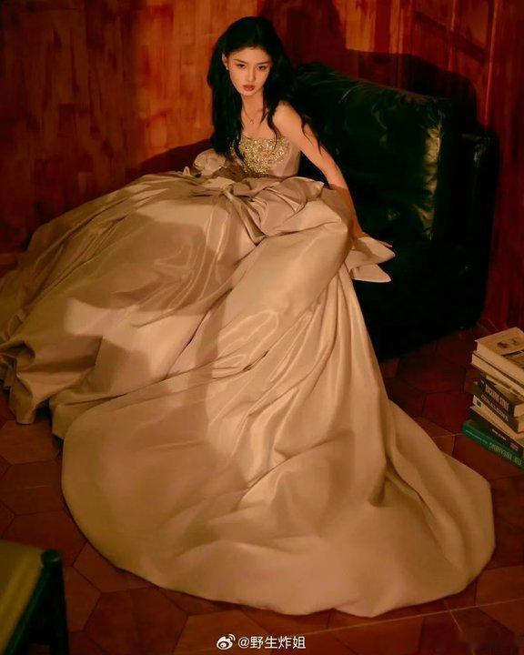 白鹿玫瑰印花礼服白鹿尖叫之夜第二套礼服 美死了! 白鹿玫瑰印花礼服