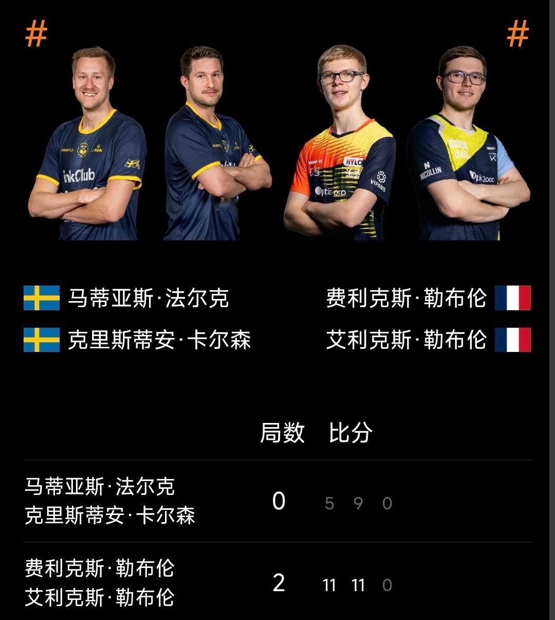 混团世界杯丨法国8-3瑞典 2025年成都混合团体世界杯 第二阶段循环赛,法国对阵瑞典,法国队混双西蒙高茨/帕瓦德、女单卢茨、男单艾利克斯.勒布伦、男双勒布伦兄弟组合各自拿下两分,四盘比赛共凑够了八分,以总比分8-3战胜瑞典,取得了第二阶段的第二场胜利! 第二阶段在7-8惜败中国香港后,法国队基本无缘晋级了!