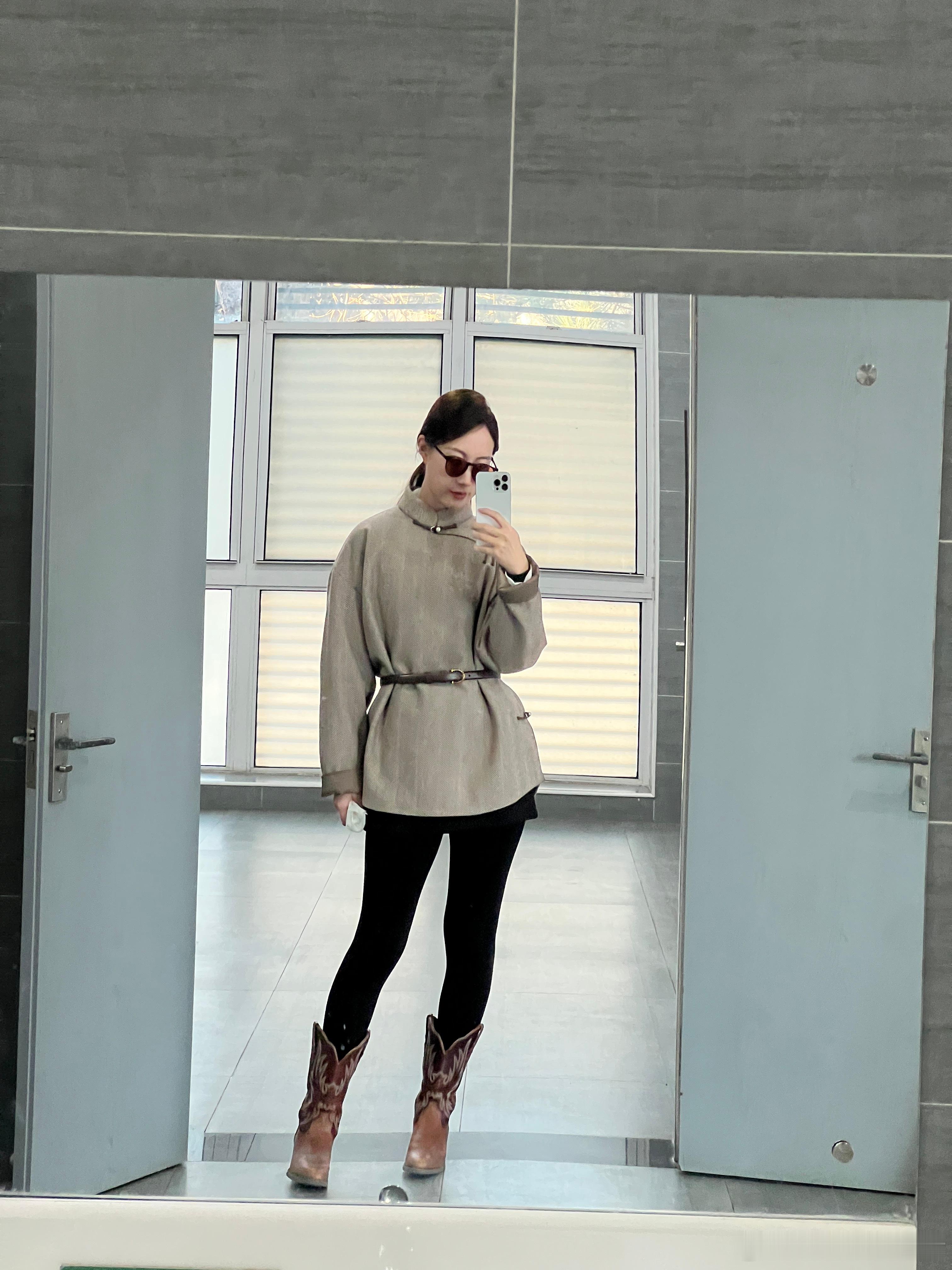 大家早啊 今天是蒙式小马前几天在内蒙买的袍子 北京的天气穿正合适 北京