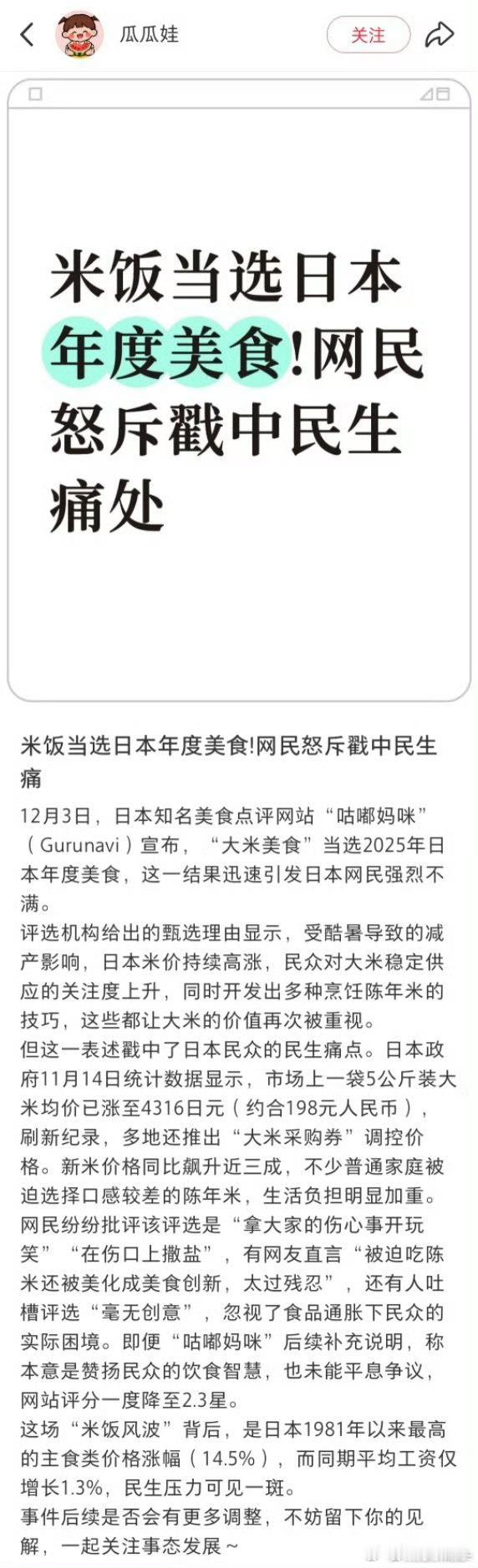 日本大米涨价再刷新纪录日本米价又双叒叕破纪录了!每5公斤卖到4335日元(约200人民币),这价格都快赶上奢侈品了。一边是民众抱怨吃不起饭,主食被迫换成意大利面;另一边,政客们却在玩“米券”这种华而不实的文字游戏。讽刺的是,超市里贴着“中国米”的货架反而被抢得一粒不剩,这波操作真是“网上喊得震天响,线下买得比谁都快”!这届日本政府,是真把“民生”当“政绩”来糊弄了。高市早苗你怎么看?