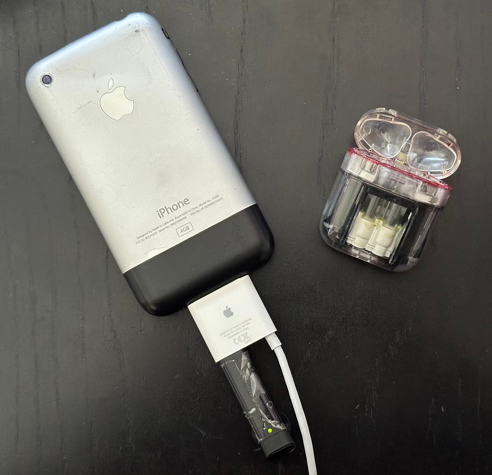 其实在2007年苹果就发布会蓝牙耳机,但因为体验太差,最终流产。可以看到充电