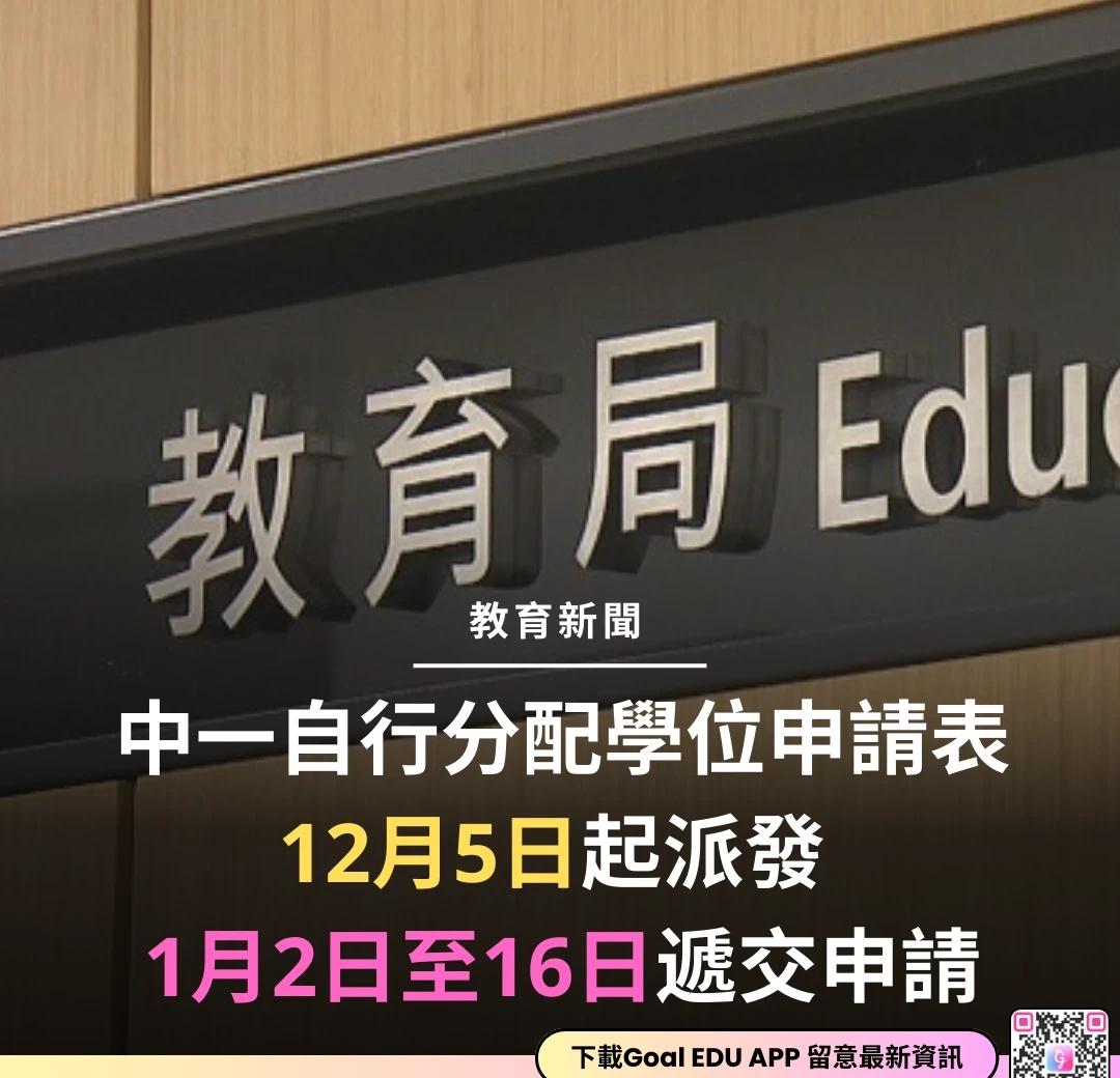 中一自行分配學位申請表12月5日起派發 📢【1月2日至16日遞交申請】 2026年度中一派位的《中一自行分配學位申請表》將於12月5日 起派發,家長需於2026年1月2日至16日向有關中學遞交申請。 📌 申請詳情 1️⃣ 申請對象:官立中學、資助中學、按位津貼中學及參與派位的直資中學。 2️⃣ 申請方式:已登記成為「中一派位電子平台」用戶的家長,可透過電子平台遞交申請及查閱相關資訊。教育局仍接受紙本申請表,並已通知參加中一派位的小學於12月5日領取《中一自行分配學位申請表》及《申請中一自行分配學位手冊》。 3️⃣ 紙本申請表派發方式:每名參加中一派位的小六學生的家長,將透過其子女就讀的小學獲得兩份申請表。非參加派位小學的學生(如新來港兒童或各人才入境計劃的受養人),家長可前往教育局學位分配組索取申請表。 4️⃣ 申請結果:家長稍後可於電子平台查詢申請結果。 📖 中學選校資訊 《中學概覽2025/2026》網上版將於12月5日發布。全港小學會向本學年小六學生家長派發《中學概覽》印刷本,便利家長了解各中學的具體資料。 升中派位 中一自行分配學位 中學申請