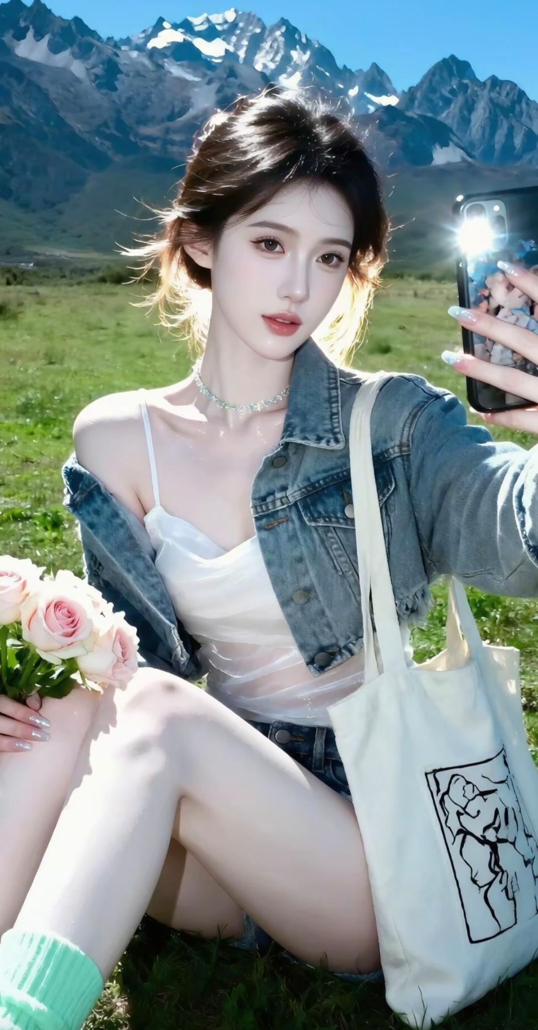 海浪漫过堤岸的黄昏,孟子义裹着一身“贝壳裙”站在风里——抹胸上粉白渐变的贝壳纹路